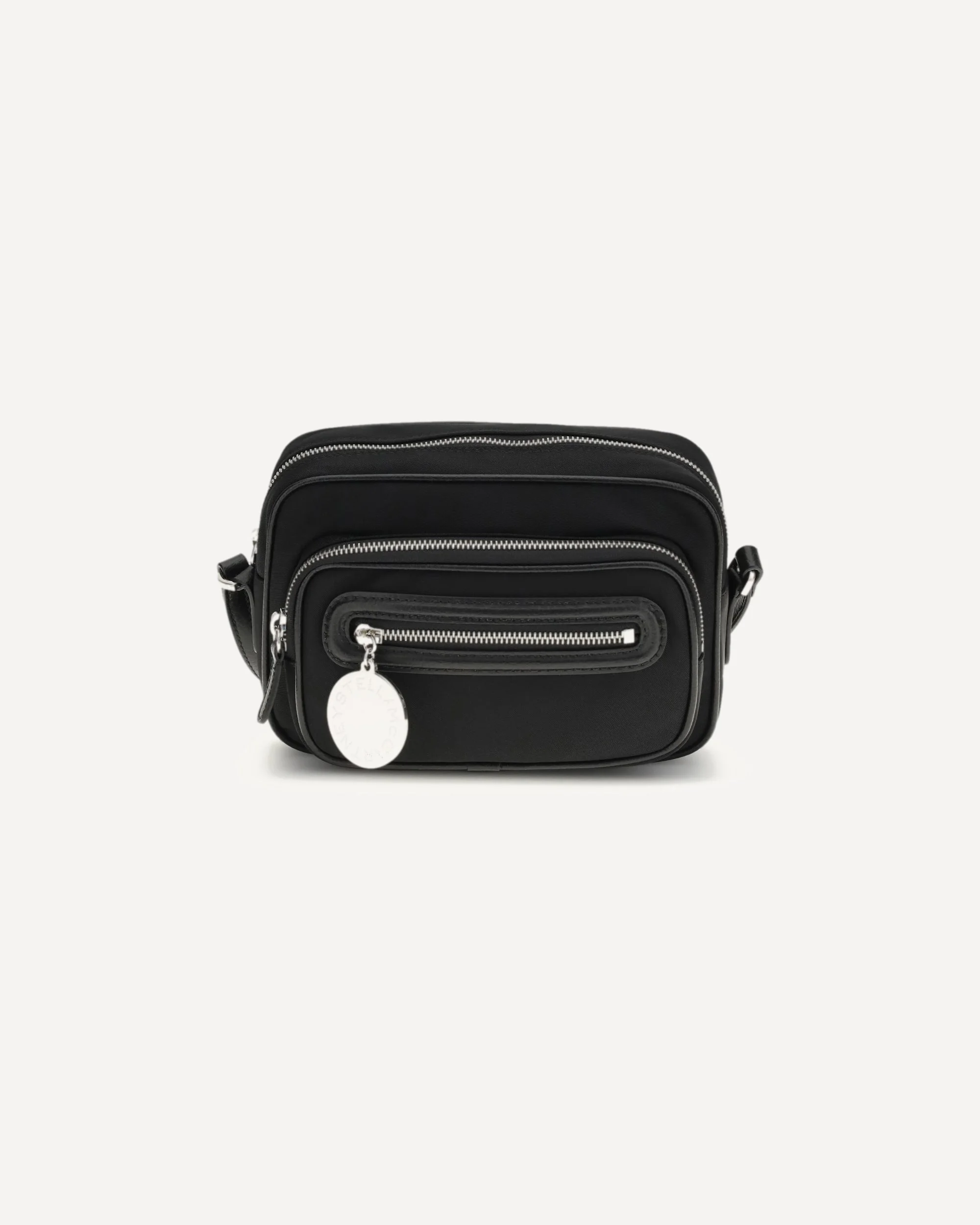 The Dartmoor Shoulder Bag in Econyl by Stella McCartney is a high-quality vegan option, made from a leather alternative with a metallic finish and a crinkled texture. Featuring a top handle and an adjustable shoulder strap, it offers great versatility and comfort. The main compartment and three external pockets ensure excellent organization, while the zip closure keeps your belongings secure. The engraved logo medallion and silver details add a touch of elegance, making this bag a chic and functional accessory. DETAILS - Sku: 7B0186WP0670_1019 - Season: SS26 - Dimension: 20.5x13.5x9 - Composition: GENERAL 100% Polyamide - MADE IN ITALY