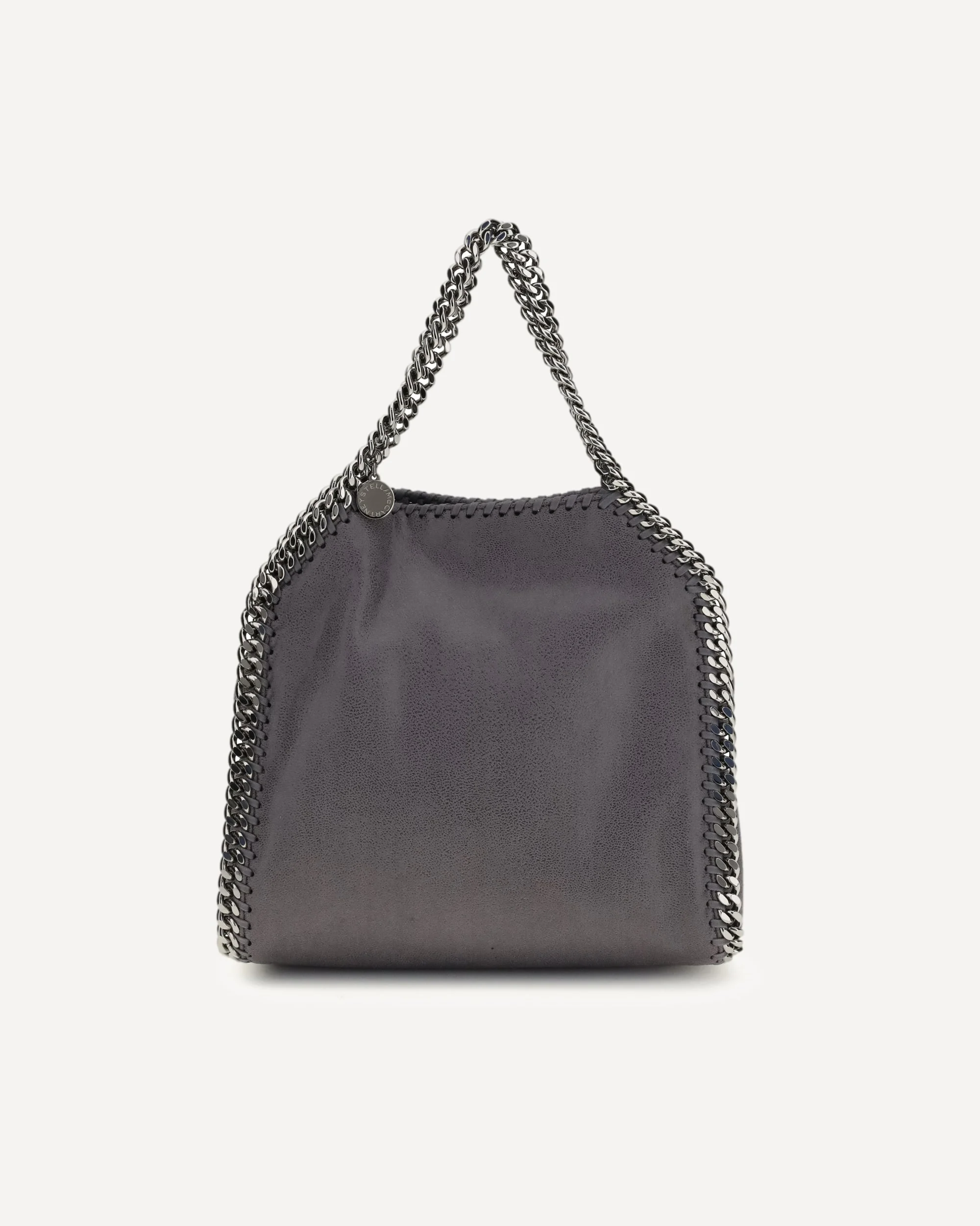 The Falabella mini Tote Handbag by Stella McCartney is a cruelty-free style icon, recognizable by its distinctive chain details. It features a silver-tone chain shoulder strap and handles, defining its unique, shiny silhouette. The magnetic flap closure ensures convenience and security. The interior, lined with the brand's logo, includes a convenient open branded pocket, perfect for essentials. A round silver brand logo pendant completes the design, adding a final touch of recognition and sophistication. DETAILS - Sku: 371223W9132_1236 - Season: SS26 - Dimension: 25x25x6 - Composition: GENERAL 100% Polyester - MADE IN ITALY