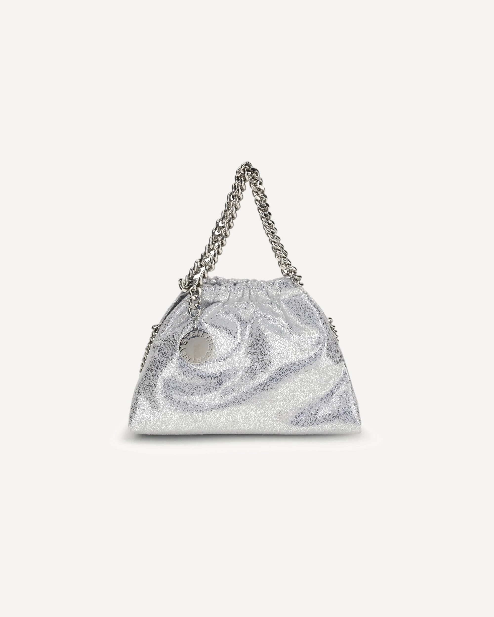 The Falabella small Shoulder Bag by Stella McCartney is an icon of ethical elegance and contemporary style. Made of shiny leatherette, it is embellished with the signature silver chain details that frame the profile with a bold and sophisticated touch. The design is completed with a magnetic safety clasp and an engraved logo medallion, distinctive elements that express the maison's bold and self-conscious aesthetic. DETAILS - Sku: 7B0144WP0301_8101 - Season: SS26 - Dimension: 22.5x22.5x8.5 - Composition: GENERAL 100% Polyester - MADE IN ITALY