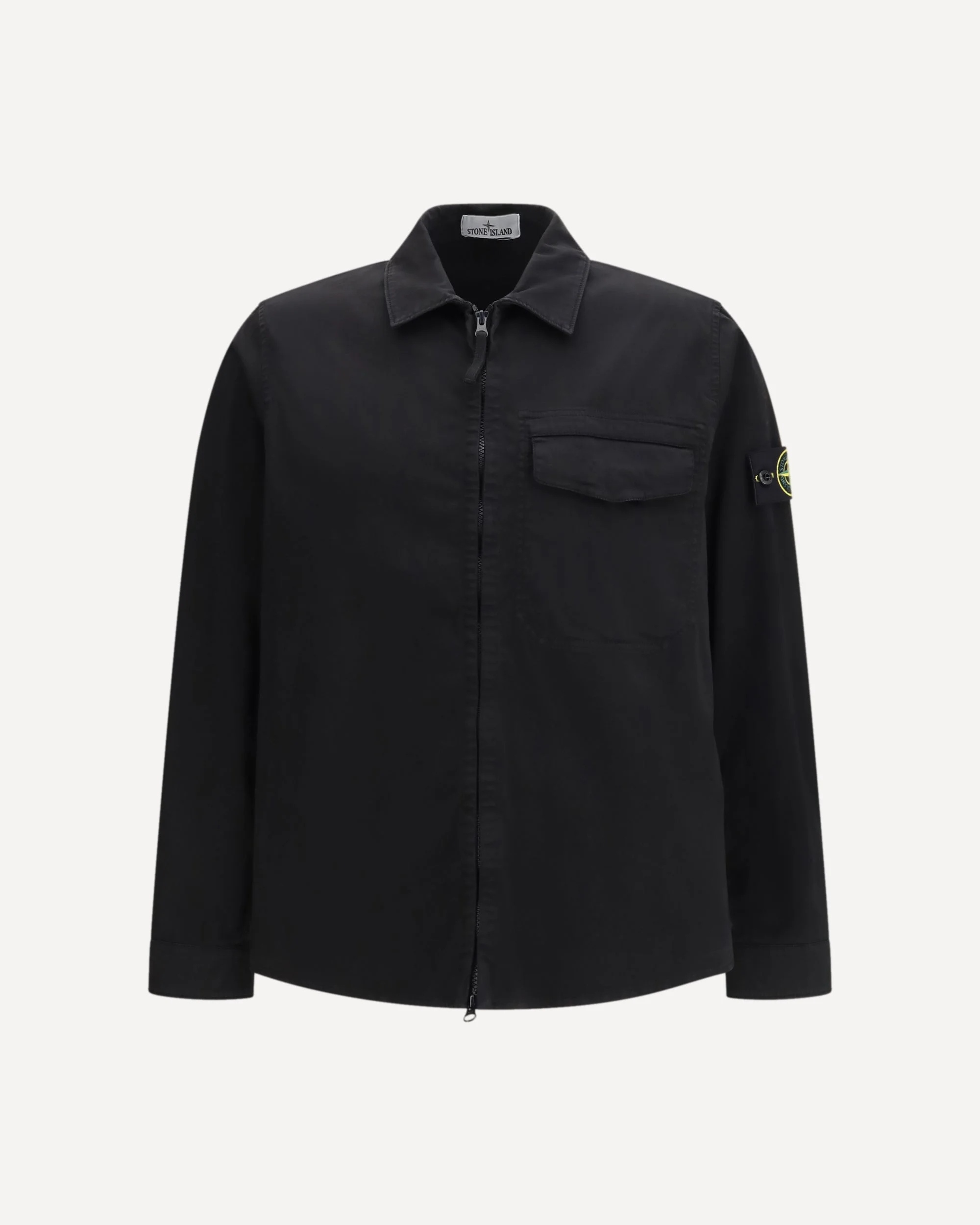 The cotton Shirt Jacket by Stone Island combines practicality and style. Featuring a classic collar, zip closure, and long sleeves, it offers a versatile and modern look. The front flap pocket and logo on the sleeve add a distinctive touch, while the buttoned cuffs and curved hem complete the design, making it a perfect piece for a casual and functional look. DETAILS - Sku: L1S151200015S0012_V0029 - Season: SS26 - Fit: Regular - Composition: GENERAL 98% Cotton 2% Elastane - MADE IN TUNISIA