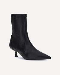 Stuart Weitzman's Naomi Ankle Boots combine elegance and comfort in an essential design. Featuring a fitted silhouette with an elongated toe, they have a practical slip-on style and a refined kitten heel that gently slims the figure. The height just above the ankle makes them versatile and perfect for both formal and casual looks. DETAILS - Sku: SJ404_BLK - Season: AW25 - Composition: GENERAL 100% Calf Leather Bos Taurus - MADE IN SPAIN