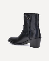 Stuart Weitzman's Tate Ankle Boots revisit the Texan style with a modern twist, featuring a pointed silhouette and a comfortable block heel. The side zipper closure ensures a practical fit, while the ankle height makes them versatile and easy to pair with casual or more sophisticated looks. DETAILS - Sku: SK310_BLK - Season: AW25 - Composition: GENERAL 100% Calf Leather Bos Taurus - MADE IN SPAIN
