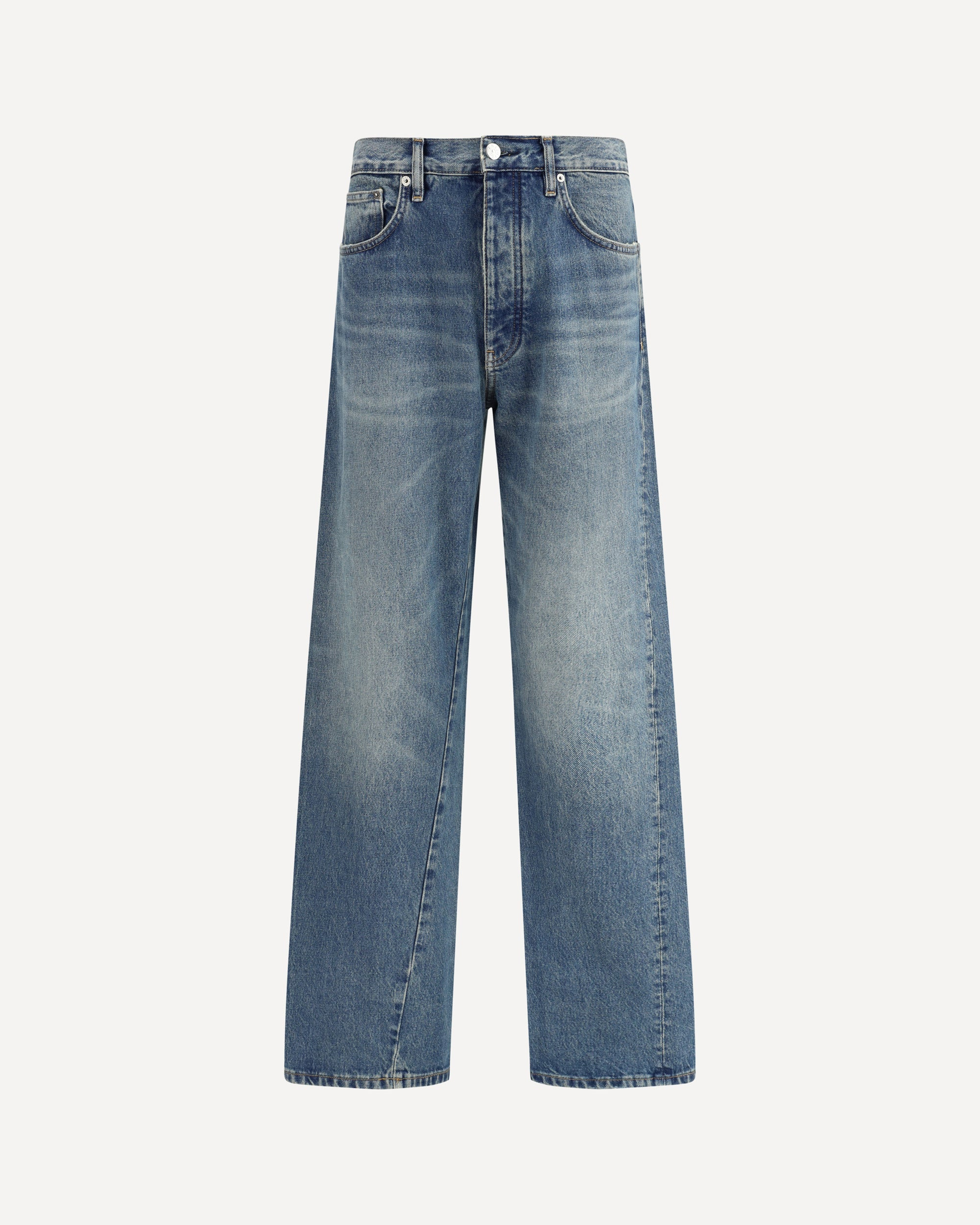 Sunflower's Wide Twist Jeans offer a modern interpretation of denim with a wide, bold cut. Made of twisted wide denim, they feature a loose fit and twisted side seams that add movement and character. The dirty dye on the wash gives an authentic vintage effect, while the recycled metal trim reflects the brand's commitment to sustainability. A garment with a strong aesthetic impact, perfect for a contemporary, casual style. DETAILS - Sku: 51342_720 - Season: AW25 - Fit: Regular - Composition: GENERAL 100% Cotton - MADE IN TUNISIA