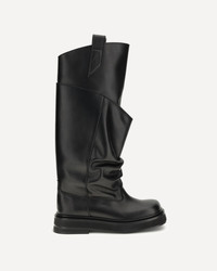 The La Passeggiata Boots by The Attico are made of soft leather and feature curved draped leggings that create an elegant layered effect. The square toe gives a contemporary touch, while the two side pulls make it easy to slip on and complete the design with a functional and refined detail. DETAILS - Sku: 260WSH00902LBT019AA_100 - Season: SS26 - Composition: GENERAL 100% Calf Leather Bos Taurus - MADE IN ITALY
