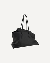 Leather La Passeggiata Shoulder Bag by The Attico, two flat tubular handles at top, double-slider zipper top closure, geometric sliders, iconic brand signature press-stamped on contrasting front, asymmetrical geometric bag. DETAILS sku 250WAH00054LBT117AA_100 composition: CALF LEATHER BOS TAURUS 100% color group: BLACK gender: WOMAN season: SS25 size chart: UNI category name: SHOULDER BAGS dimensions: 26 x 42.5 x 16 cm