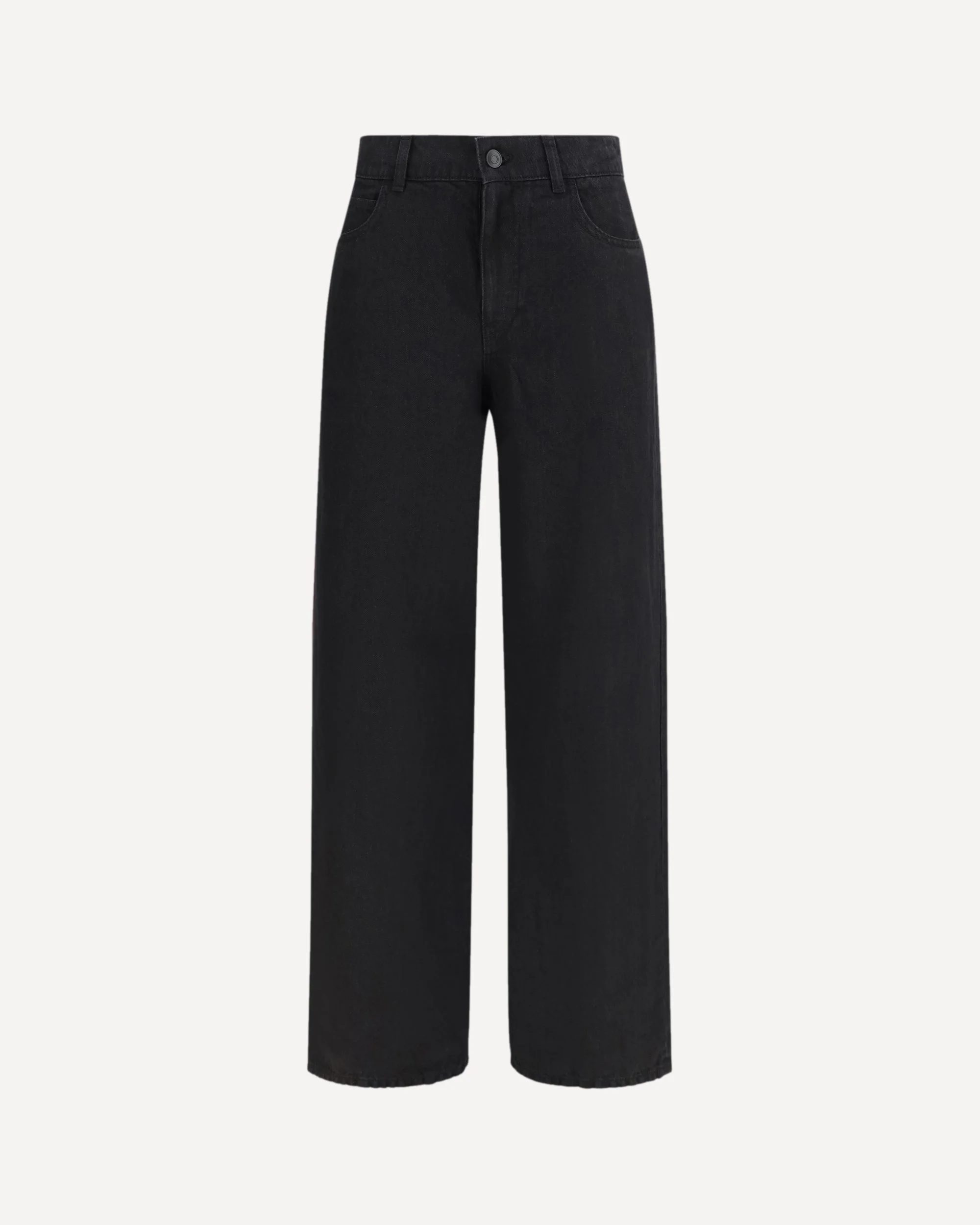 The linen Eglitta Jeans by The Row are a style that perfectly embodies the brand's minimalist elegance. With a wide leg silhouette, these jeans offer a loose and comfortable fit that lends a modern and sophisticated touch to the look. The five-pocket design is classic, but their wide cut and high waist add a contemporary, on-trend element. The waistband, which features belt loops, makes it easy to adjust the fit, while the zip-and-button front closure completes the look with a practical and stylish detail. DETAILS - Sku: 6525W3654_BLK - Season: SS26 - Fit: Regular - Composition: GENERAL 100% Linen - MADE IN JAPAN