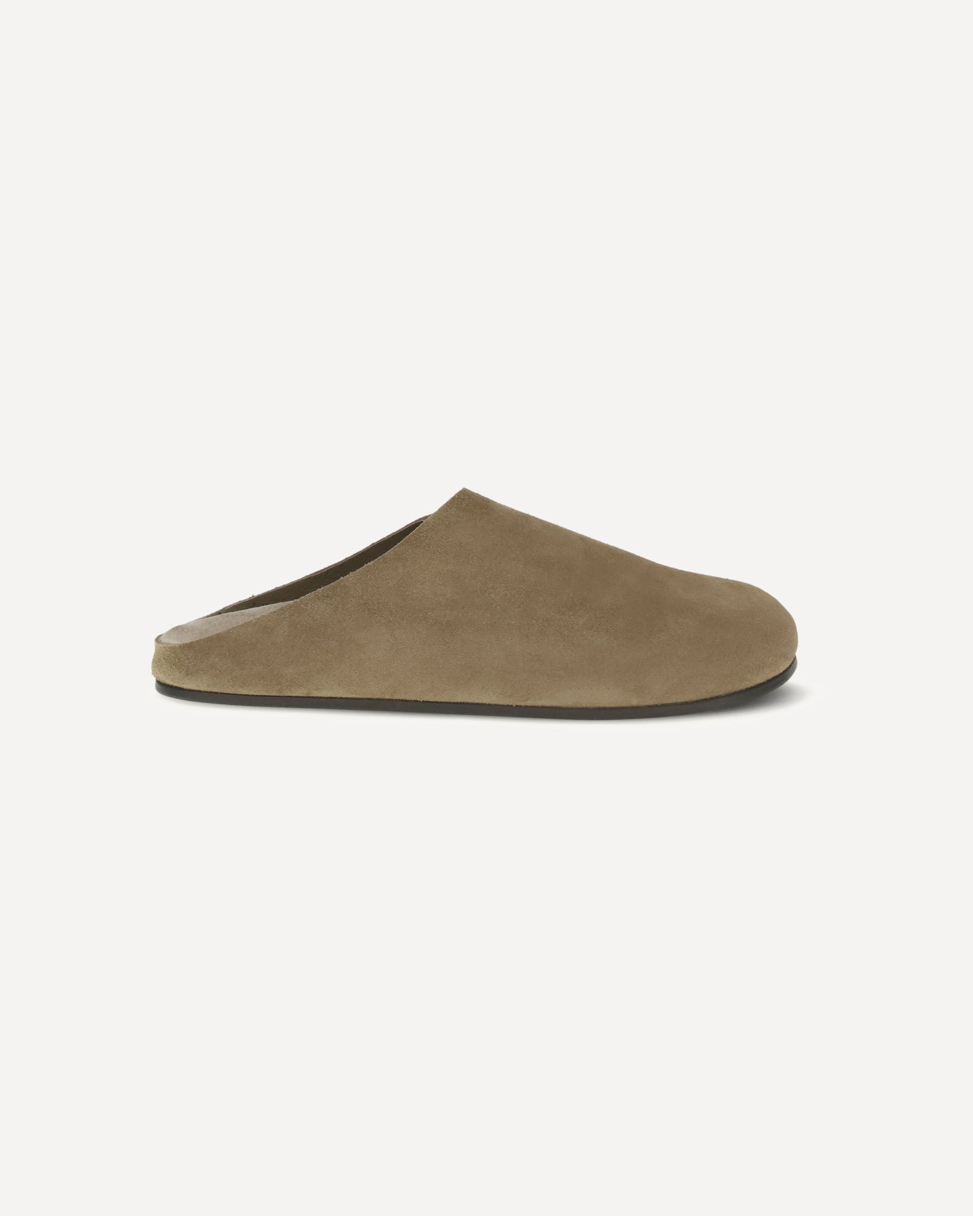 The suede Hudson Mules by The Row embody the brand's sophisticated essentiality, with a clean design and a fit designed for everyday comfort. Made of natural suede, they feature a slip-on silhouette, a round toe and a contoured footbed that gently follows the shape of the foot. The rubber sole completes the design, ensuring stability and discretion with every step. DETAILS - Sku: F1705L302_MTR - Season: AW25 - Composition: GENERAL 100% Calf Leather Bos Taurus - MADE IN ITALY