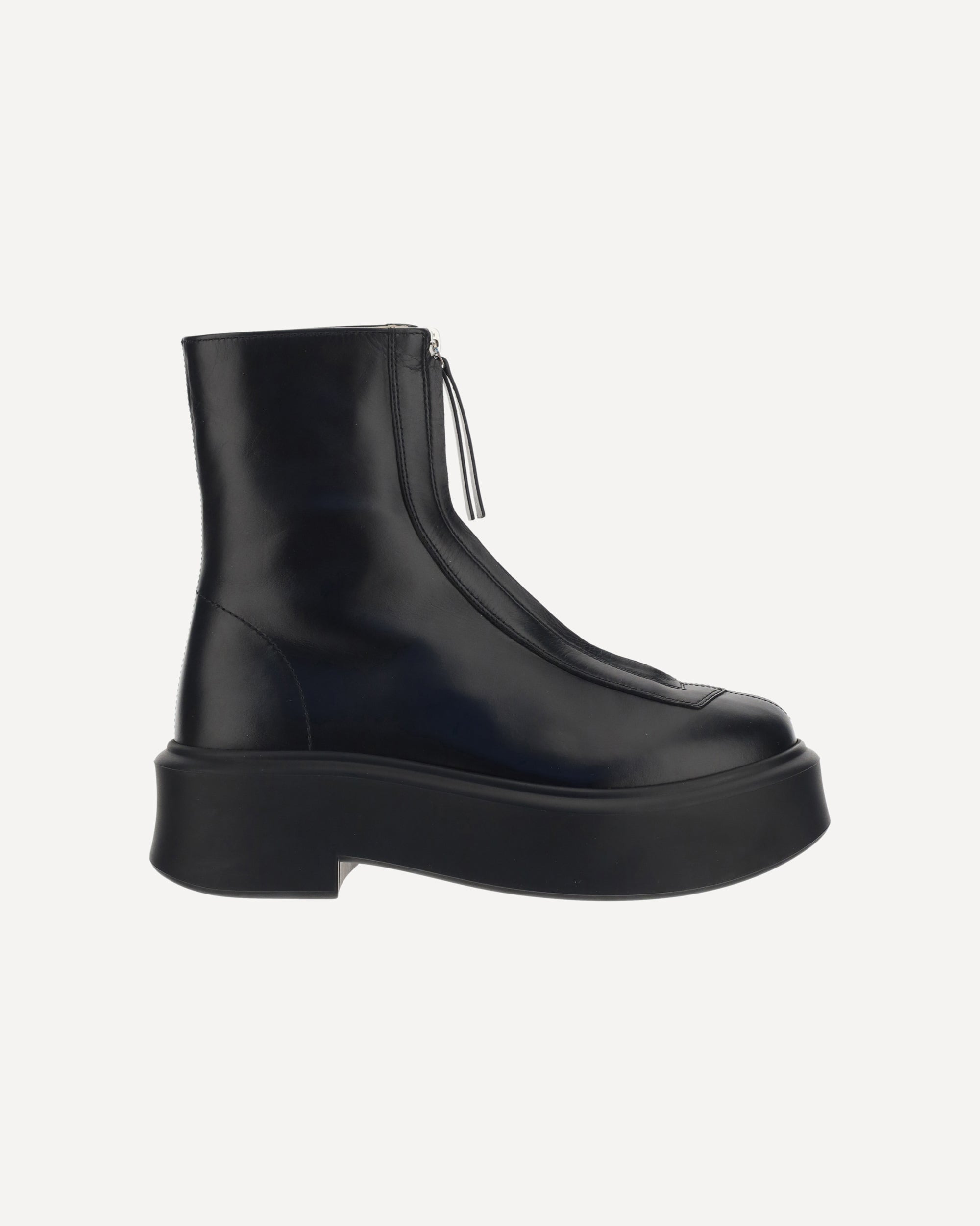 Leather Zipped Boot 1 by The Row, functional, front zip fastening, round toe, thick rubber para sole. DETAILS sku F1144L64R_BLK composition : CALF LEATHER BOS TAURUS 100% color group : BLACK gender : WOMAN season : AW23 size chart : SHOES WOMAN IT category name : BOOTS