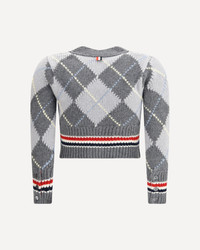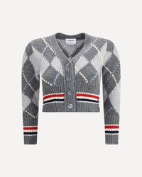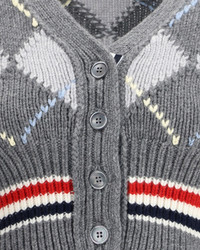 The Argyle V-Neck Cardigan by Thom Browne is crafted from soft merino wool and elevated with the House’s signature argyle pattern, bringing timeless elegance to a modern silhouette. Featuring a cropped length, V-neckline, long sleeves, and front button closure, it blends classic tailoring with contemporary flair. A refined piece designed for versatile styling. DETAILS - Sku: FKC679AY1029_982 - Season: AW25 - Fit: Regular - Composition: GENERAL 97% Fleece Wool 3% Polyamide - MADE IN ITALY