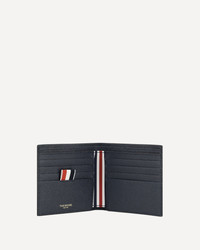 Thom Browne's grained leather wallet features a stylish bifold design with two bill compartments and card slots with an iconic tab. It also includes two slit pockets for added convenience. The interior is lined in the brand's distinctive colors, while the gold logo on the inside adds a touch of understated luxury. A refined and functional accessory perfect for those seeking style and quality. DETAILS sku MAW023A00198_415 composition: CALF LEATHER BOS TAURUS 100% color group: BLUE gender: MAN season: SS25 size chart: UNI category name: WALLETS dimensions: 10 x 11 x 1.5 cm