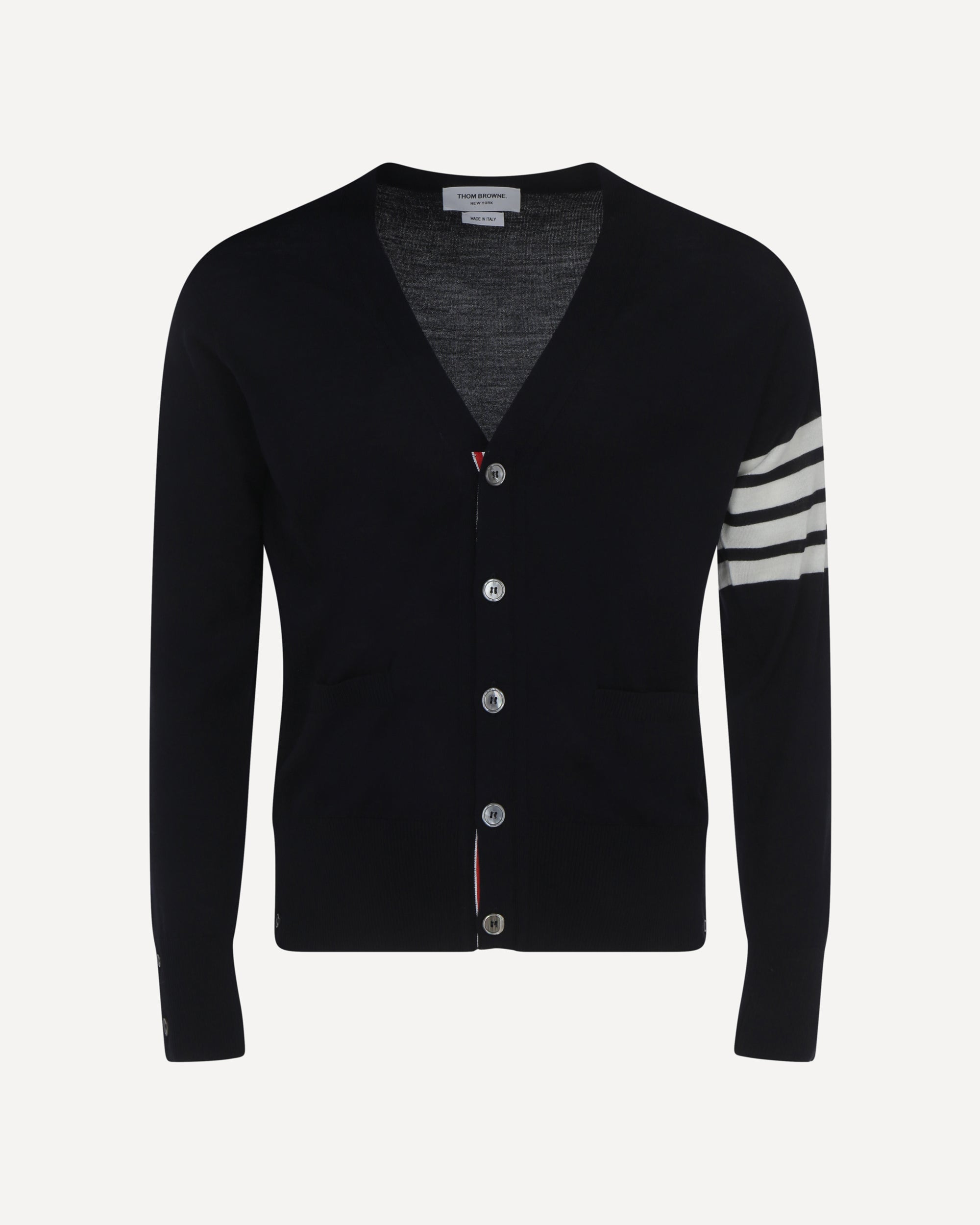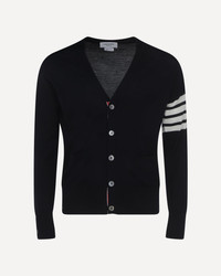 Navy Merino Wool Knit 4-Bar Classic V-Neck Cardigan