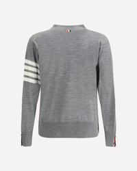 Fleece wool Cardigan by Thom Browne, striped cuffs with button, ribbed hem with adjustable side slits with buttons, V-neck, front button closure, two patch pockets on front, iconic brand logo bands on left arm, internal profiles with iconic brand colors. DETAILS - Sku: MKC002AY1014_058 - Season: AW25 - Fit: Regular - Composition: GENERAL 100% Fleece Wool - MADE IN ITALY