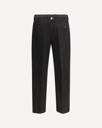 Thom Browne's Melbourne cotton Pants are a stylish design with a straight-leg cut that gives a refined silhouette. The front closure consists of a hook, button and zipper for a secure and stylish fit. Two side welt pockets and two buttoned back welt pockets offer practicality and a touch of class. The iconic tricolor patch applied to the back adds a distinctive brand detail. With a high waist, these pants combine classic elegance and modernity, perfect for a sophisticated and timeless look. DETAILS - Sku: MTU335WF0576_001 - Season: AW25 - Fit: Regular - Composition: GENERAL 100% Cotton - MADE IN ITALY