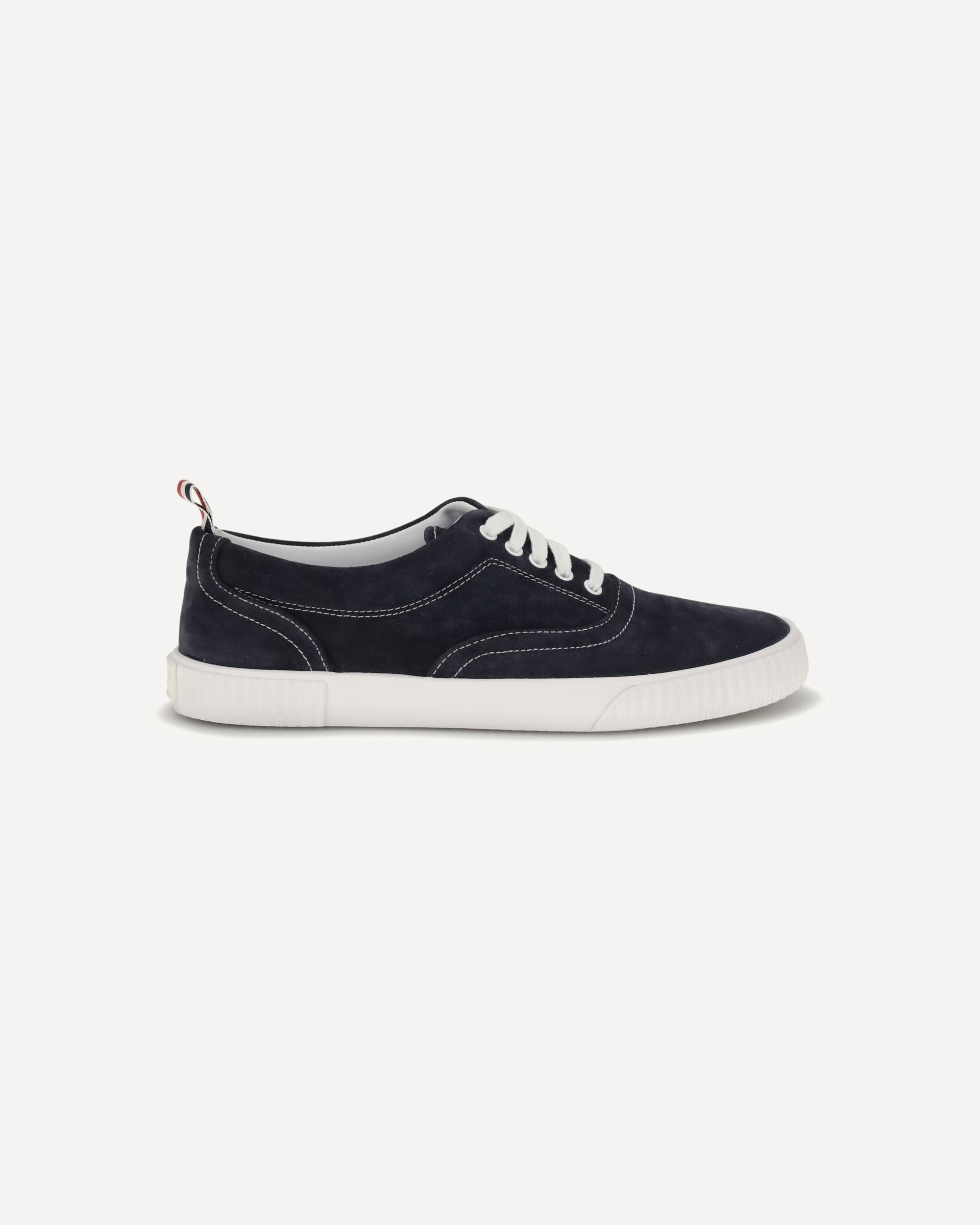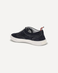 Thom Browne's leather Sneakers combine minimal elegance with iconic details. Featuring a lace-up closure and rubber sole, they are finished with the brand's signature tri-color striped grosgrain loops. A versatile model that combines classic style and contemporary spirit. DETAILS - Sku: MFE007BL0037_415 - Season: AW25 - Composition: UPPER 100% Calf Leather Bos Taurus SOLE 100% Rubber - MADE IN SPAIN