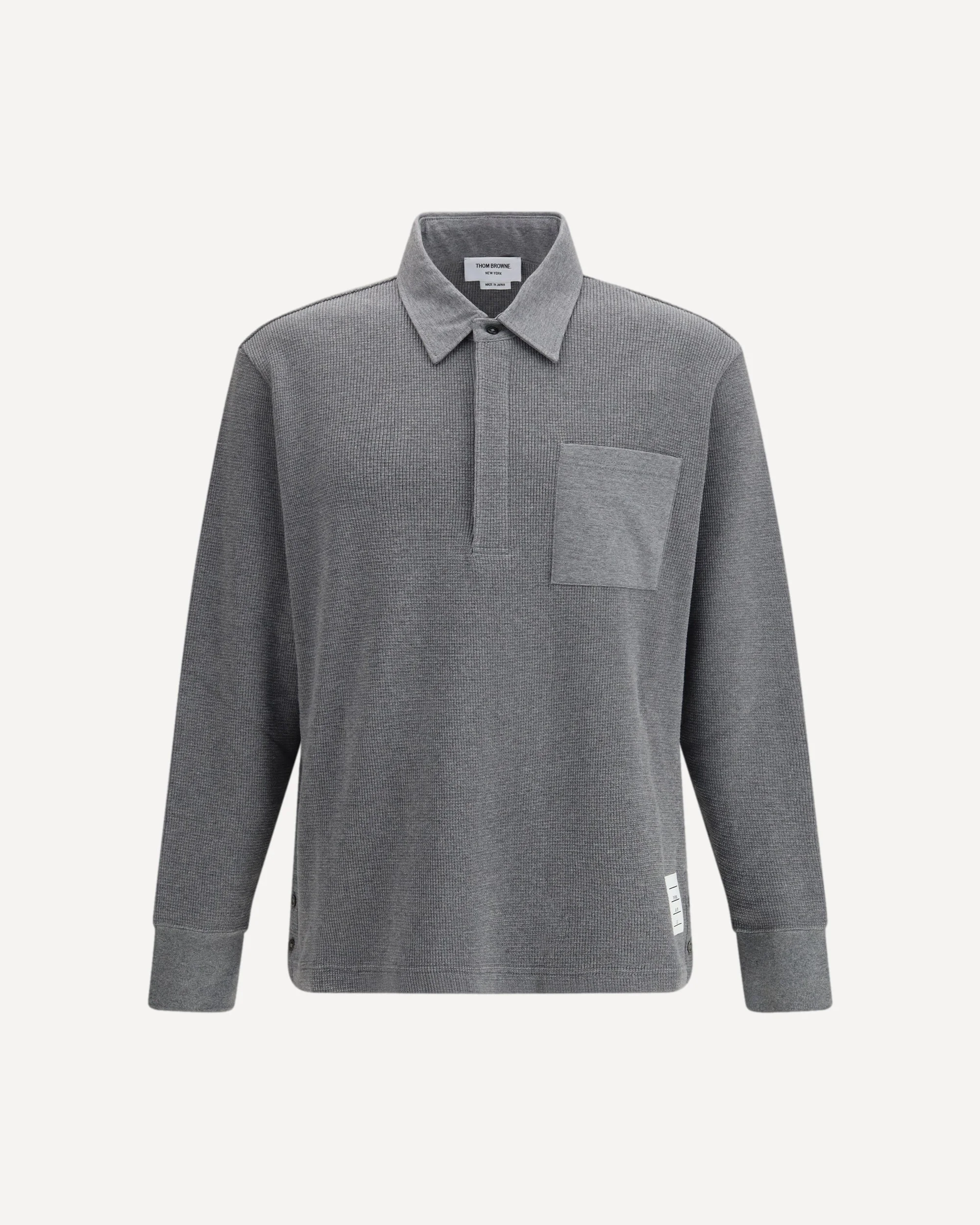 The long sleeve Polo Shirt by Thom Browne is a timeless piece with a touch of modern sophistication. Featuring a classic collar and button closure, it offers a clean, versatile design. The patch pocket on the front adds a distinctive detail, combining functionality and style. Perfect for a casual yet stylish look, this polo shirt is a must-have for those seeking comfort without sacrificing quality and elegance. DETAILS - Sku: MJP233AJ0114_035 - Season: SS26 - Fit: Regular - Composition: GENERAL 100% Cotton - MADE IN ITALY