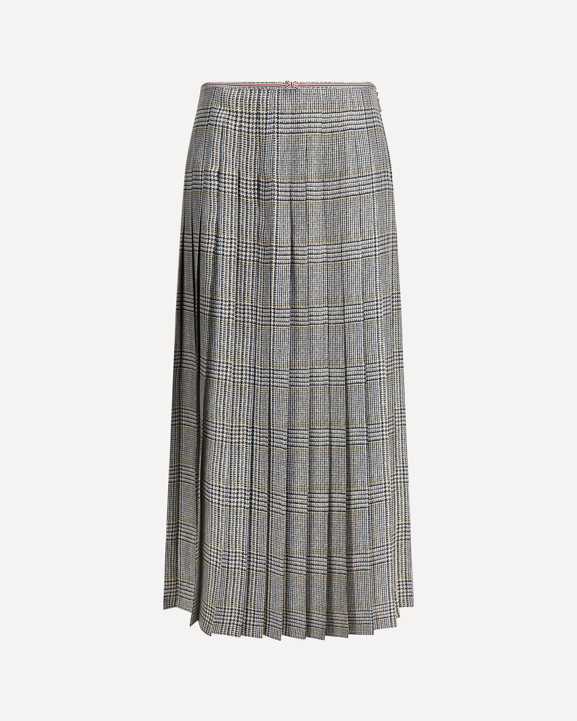 HUNTING TWEED SILK TWILL PLEATED SKIRT