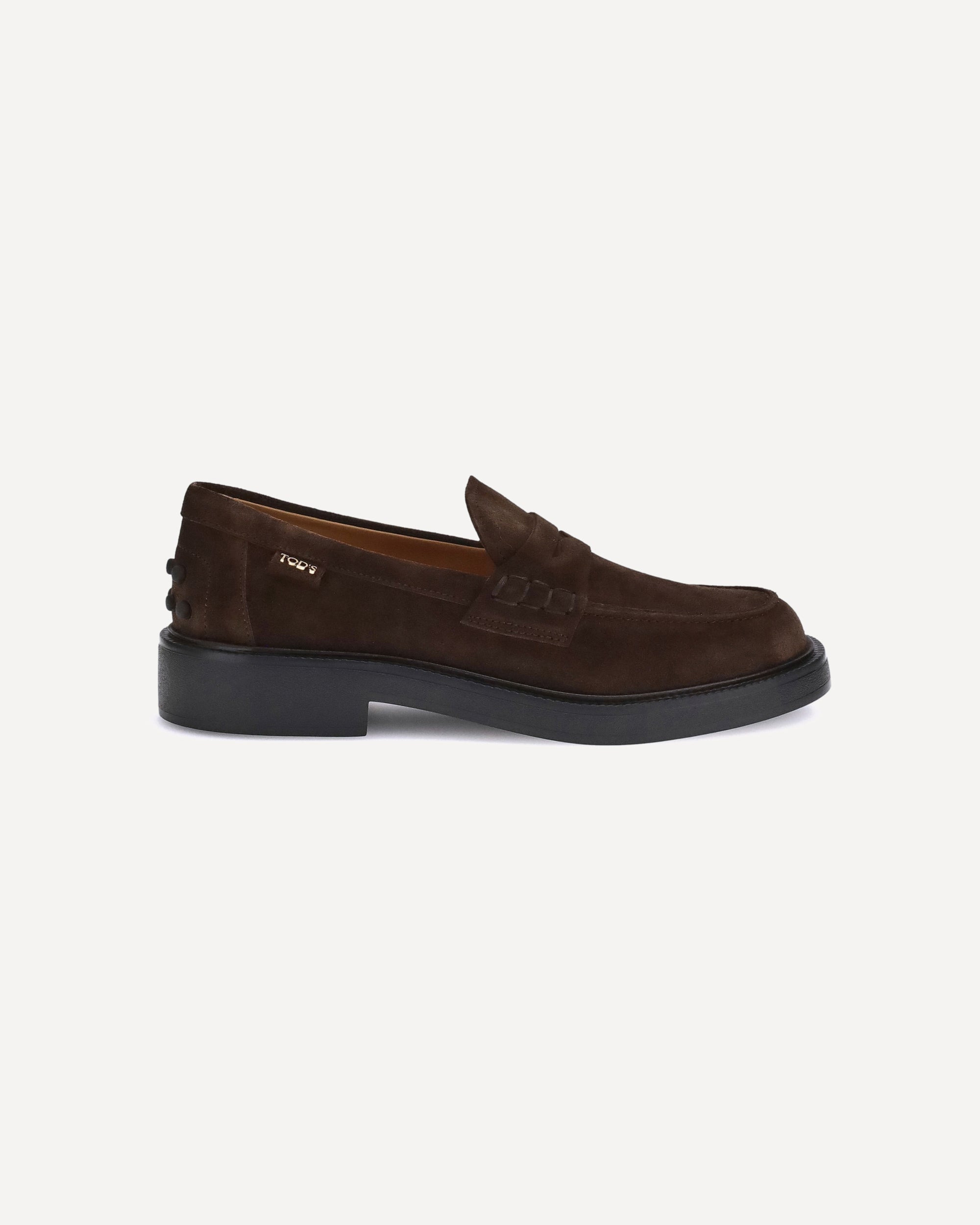 The Tod's suede Loafers combines traditional craftsmanship and refined style. Featuring a vamp with visible hand-stitched stitching, it is embellished with a side label with the Tod's logo that highlights its authenticity. The rubber pebble detail on the heel and the rubber sole with embossed pebbles guarantee comfort and the classic Tod's grip. An iconic model, a symbol of timeless elegance. DETAILS - Sku: XXW20L0IP70RE0_S611 - Season: AW25 - Composition: SOLE 100% Rubber UPPER 100% Calf Leather Bos Taurus - MADE IN ITALY