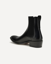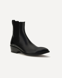 Tom Ford's Men's Chelsea Ankle Boots reinterpret a masculine classic with elegance and character. Crafted with sartorial care, they feature an ankle-length construction with side elastic for a snug, practical fit, and a pull-on heel for easy donning. The design is complemented by a slightly raised toe and a solid block heel, adding stability and a sophisticated touch to a timeless style. DETAILS - Sku: J1574LCL497N_1N001 - Season: AW25 - Composition: GENERAL 100% Calf Leather Bos Taurus - MADE IN ITALY