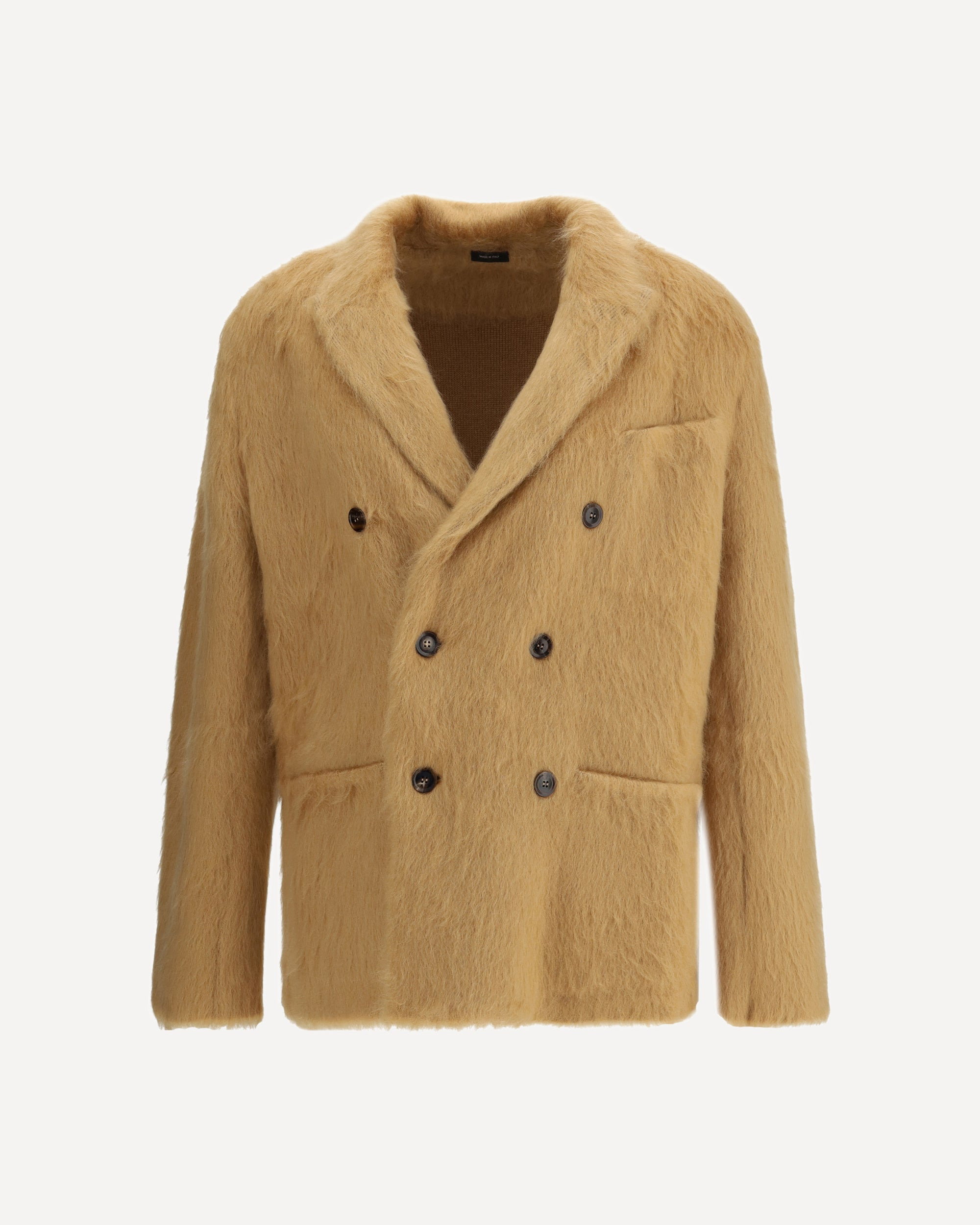 Tom Ford's double-breasted cashmere and mohair Jacket expresses refined sartorial elegance, enhanced by the brand's iconic details. The design features a collar with classic lapels and a double-breasted closure with six contrasting buttons that enhance its bold character. The breast pocket and two patch pockets on the front add functionality and style. The slightly dropped sleeve lapel and long sleeves with cuffs and button opening complete an impeccably cut garment, ideal for contemporary and timeless elegance. DETAILS - Sku: KJL005YMM013_JB556 - Season: AW25 - Fit: Regular - Composition: GENERAL 50% Kashmir/capra Hircus 35% Mohair 15% Silk - MADE IN ITALY