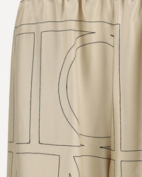 The Monogram silk pj Bottoms by Toteme are crafted from mid-weight, fluid silk twill embroidered with a refined monogram pattern in contrasting black thread. They feature a relaxed, straight-leg silhouette inspired by classic pajamas and are finished with a comfortable elasticated waistband and practical side pockets. Wear them with the matching Monogram silk pj top or pair them with a simple tank for an effortless look. DETAILS - Sku: 213255707_926 - Season: SS26 - Fit: Oversize - Composition: GENERAL 100% Silk - MADE IN CHINA