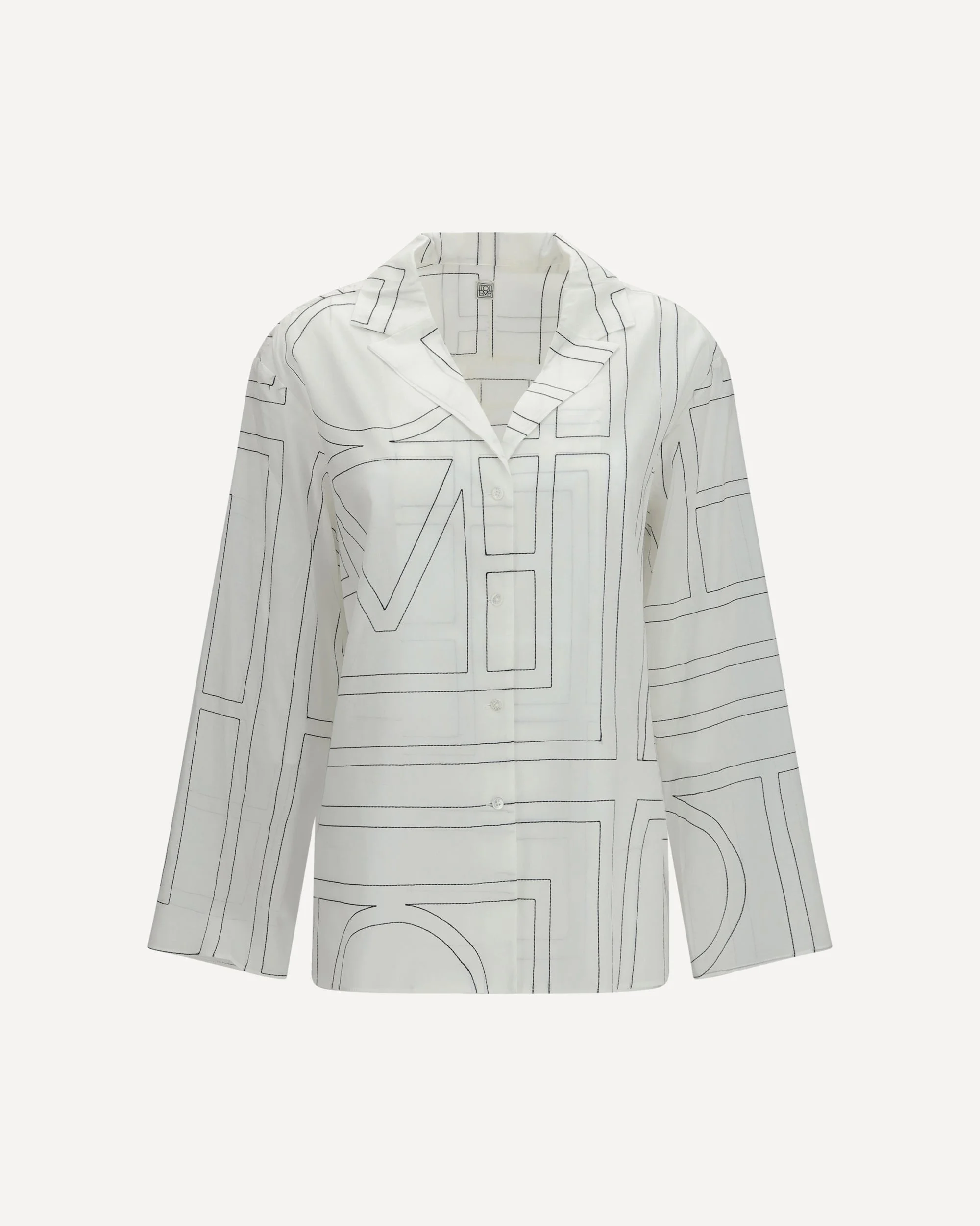 The PJ monogram cotton Shirt by Toteme combines comfort and minimalist style in an essential piece. Featuring a round neckline and long sleeves, it showcases a tonal logo on the front for a subtle detail. The back is clean and undecorated, while the cotton-blend fabric ensures softness and a regular fit. Perfect for relaxing moments or refined casual looks. DETAILS - Sku: 243WRT976FB0239_200 - Season: SS26 - Fit: Regular - Composition: GENERAL 50% Cotton 50% Lyocell - MADE IN CHINA