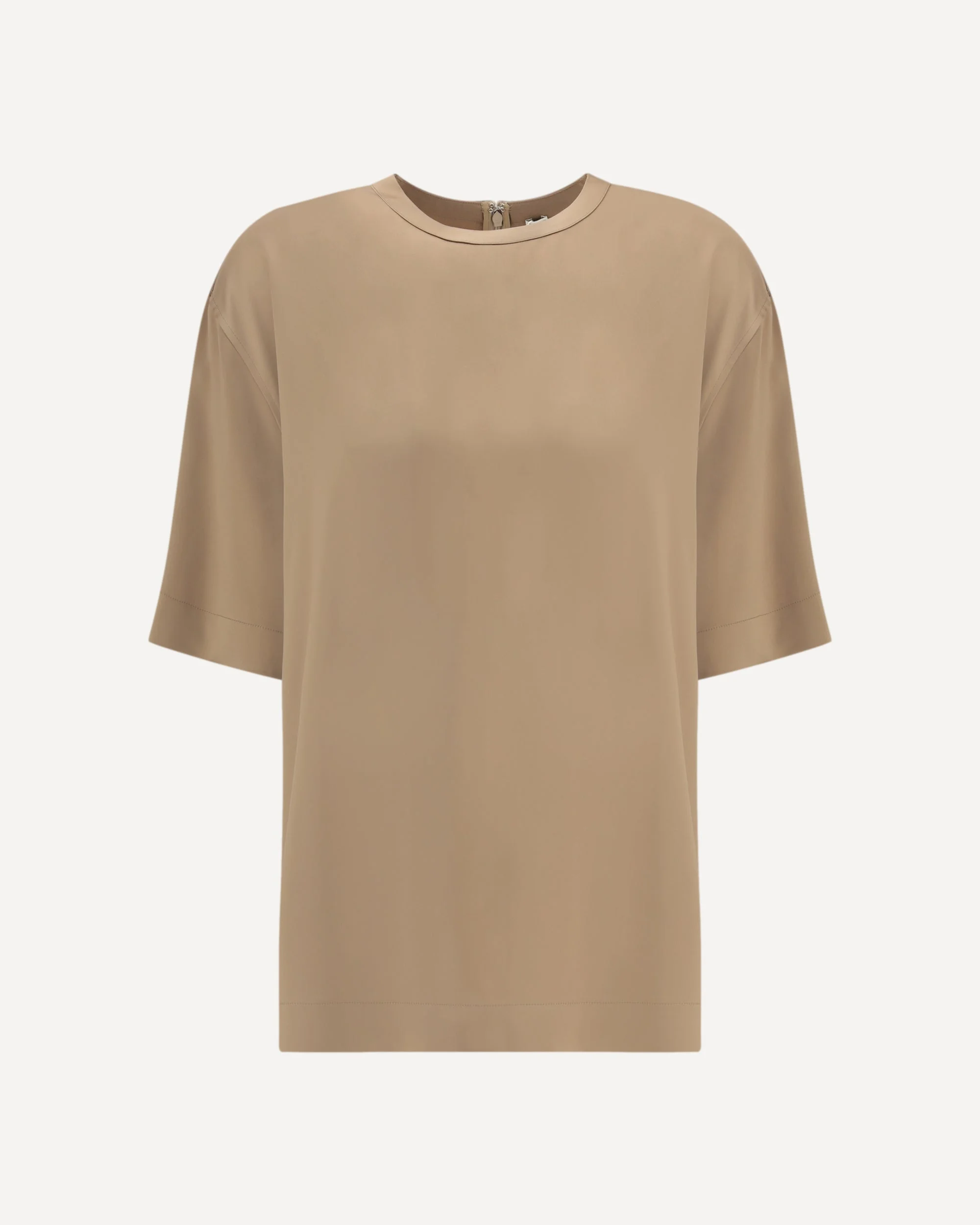 The satin T-shirt by Toteme is crafted from fluid satin that drapes effortlessly and offers a refined sheen, reflecting the brand’s vision of a modern, timeless uniform. The clean, minimal silhouette is finished with a concealed back zipper for a sleek and polished look. DETAILS - Sku: 261WRT0629FB0546_088 - Season: SS26 - Fit: Regular - Composition: GENERAL 100% Viscose - MADE IN CHINA