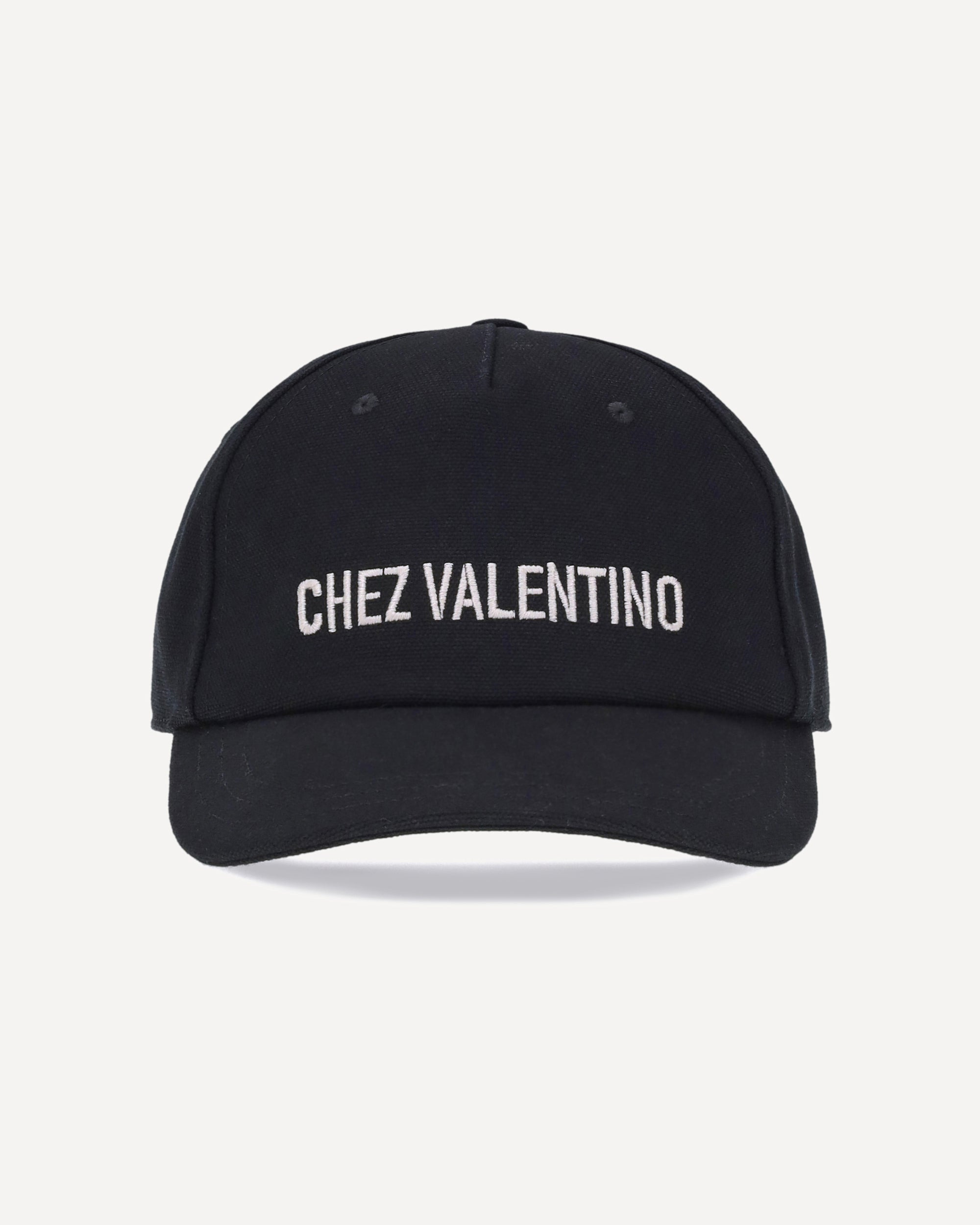 The Chez Valentino Baseball Hat by Valentino Garavani is a casual accessory with a distinctive character. Crafted with attention to detail, it features Chez Valentino embroidery on the front and the double Paris/Rome signature on the back, a tribute to the Maison's cosmopolitan identity. The adjustable strap ensures a personalized and comfortable fit. A perfect garment to complete urban looks with an iconic and contemporary touch. DETAILS - Sku: 7Y2HDA41FVH_0NA - Season: AW25 - Composition: GENERAL 100% Cotton - MADE IN ITALY