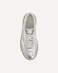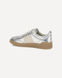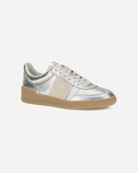 Valentino Garavani's Upvillage Sneakers in laminated calf leather combine light and character in a contemporary silhouette. The tasseled calf leather band creates an elegant contrast, on which the Valentino Garavani logo, also featured on the tongue, stands out. The rubber sole, personalized with the iconic stud detail, completes the design with a gritty and distinctive touch. DETAILS - Sku: 7W2S0IL9HEJ_BJU - Season: AW25 - Composition: UPPER 100% Calf Leather Bos Taurus SOLE 100% Rubber - MADE IN ITALY