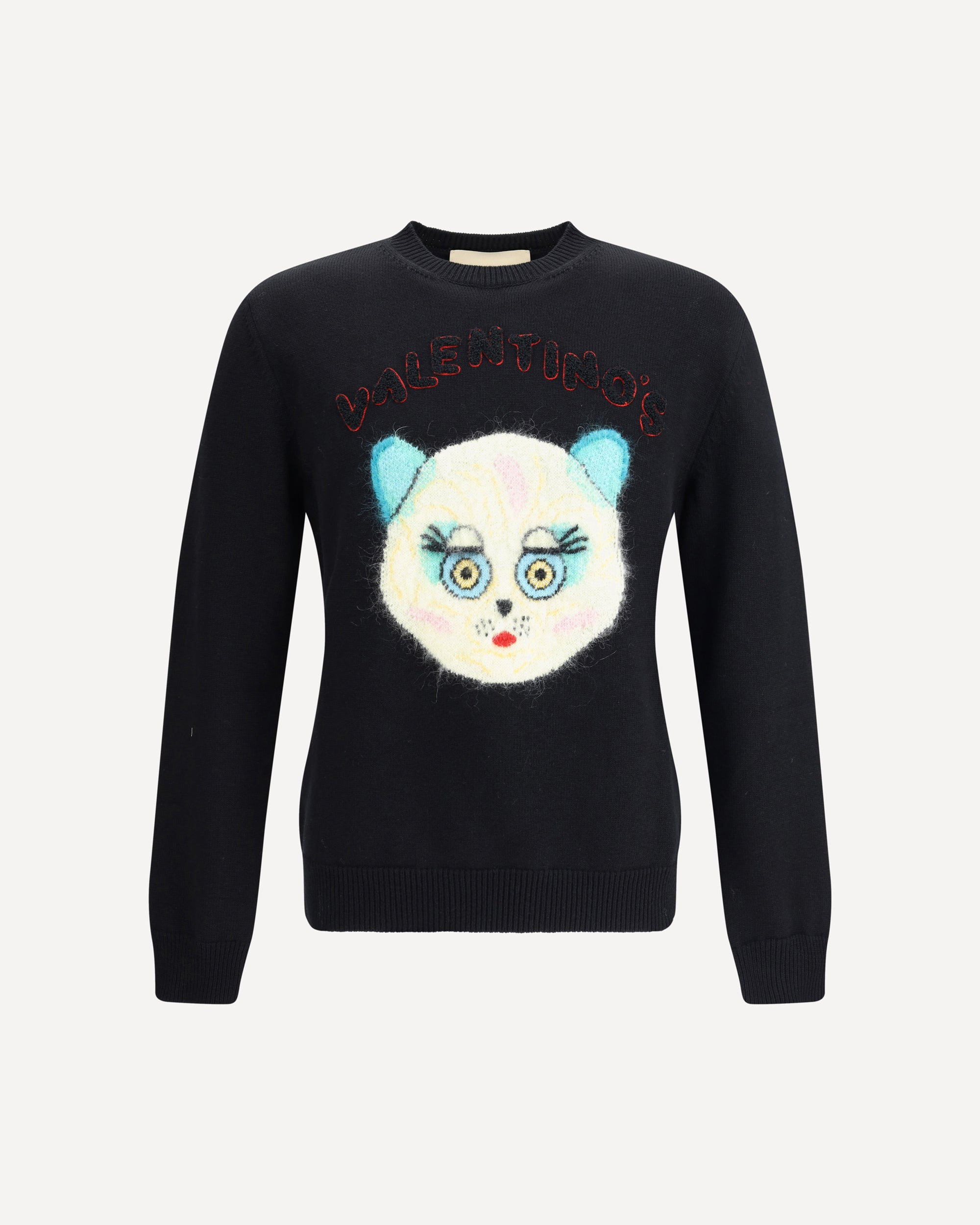 Made from a blend of wool and cotton, Valentino's Le Chat De La Maison Sweater is a piece of sophisticated comfort. The ribbed crew neck and ribbed hems on the sleeves and hem add a touch of casual elegance, while the Le Chat De La Maison patch on the chest lends a distinctive and recognizable detail. A perfect garment for those seeking a balance between style and comfort. DETAILS - Sku: 7V3KC35IB2V_0NO - Season: AW25 - Fit: Regular - Composition: GENERAL 65% Cotton 35% Wool - MADE IN ITALY