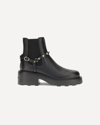 Valentino Garavani's grained leather Ankle Boots combine grit and sophistication in a contemporary design. Featuring a round toe and side elastic inserts for easy wear, they are embellished with a detachable instep strap decorated with iconic metal studs. Inside, the logoed label discreetly signs the house's unmistakable style. DETAILS - Sku: 7W2S0KU2RWA_0NO - Season: AW25 - Composition: UPPER 100% Calf Leather Bos Taurus SOLE 100% Rubber - MADE IN ITALY