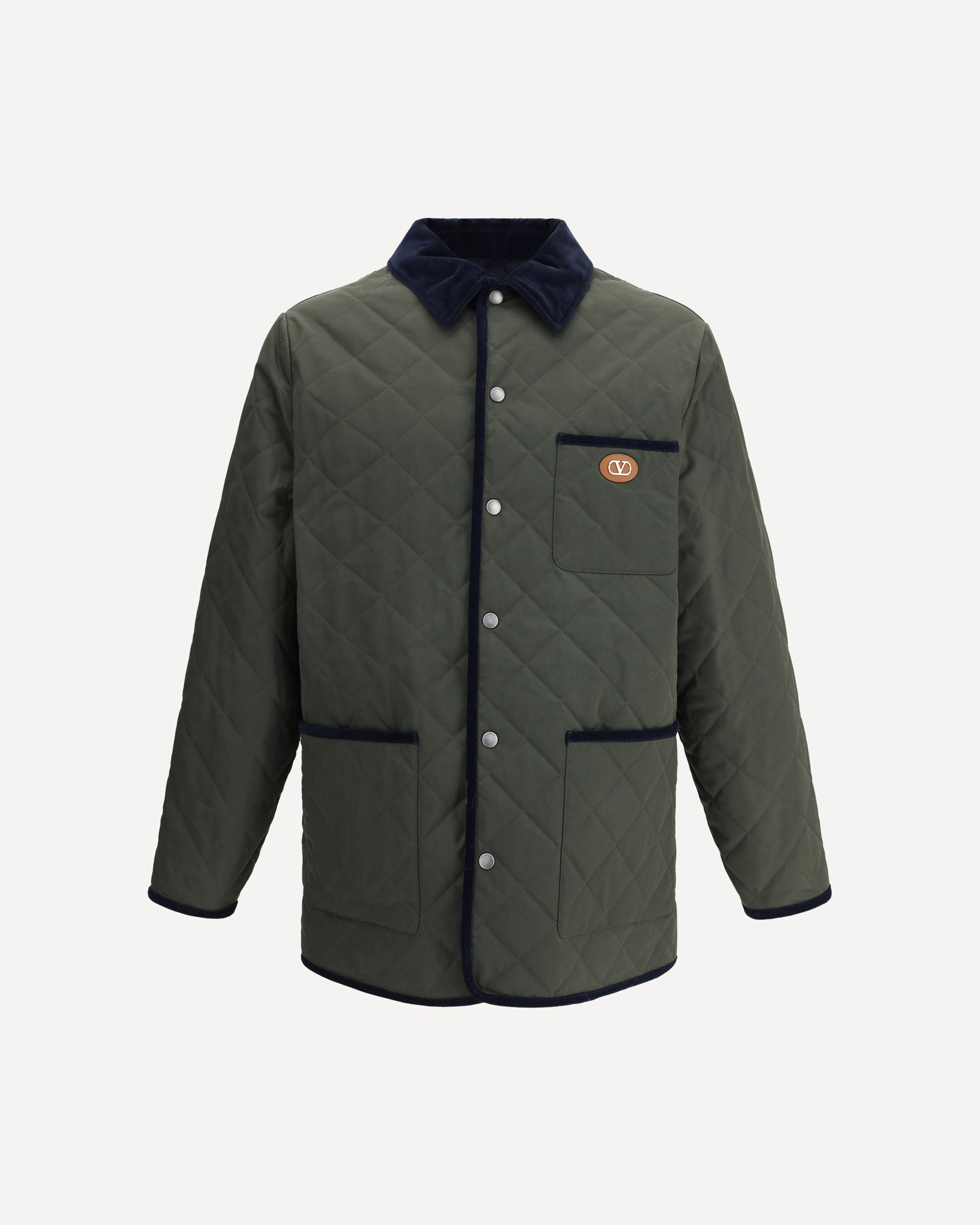 Valentino's logo quilted Jacket combines functionality and style in a refined silhouette. Lined and lightly padded, it is enhanced by an appliqued VLogo patch on the chest pocket, left side worn. The velvet collar and trim add a touch of textural elegance, while the three front patch pockets complete the design with practicality and character. DETAILS - Sku: 7V3CJK95CKV_APF - Season: AW25 - Fit: Regular - Composition: GENERAL 100% Polyamide - MADE IN ITALY
