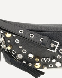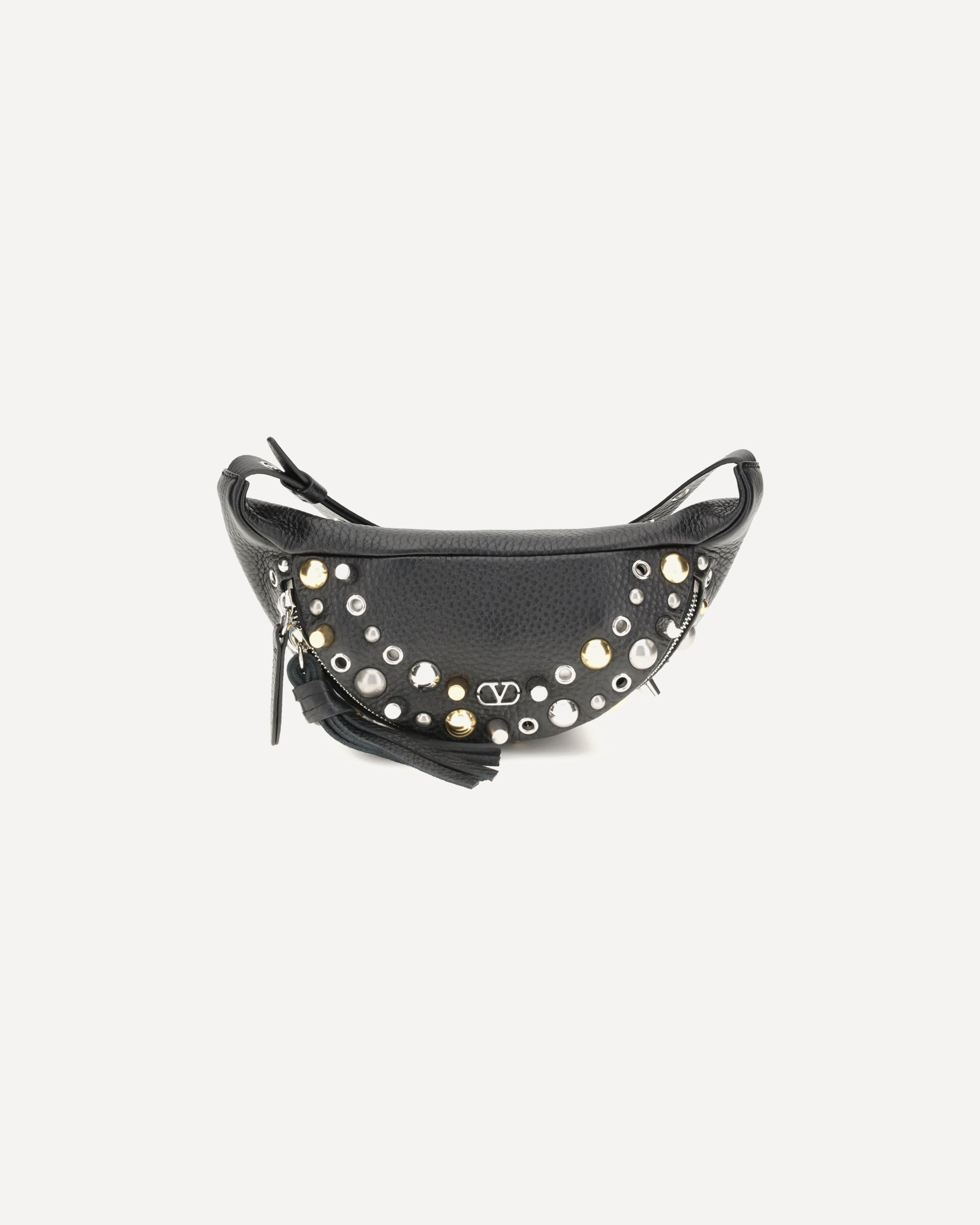 Valentino Garavani's Nellcote Fanny Pack is crafted from garnet calfskin and embellished with studs of various shapes and sizes for a bold and refined look. Complemented by a metallic Signature VLogo detail, it features a zipper closure, adjustable leather belt and an interior flat pocket, perfect for adding a gritty touch to your everyday outfit. DETAILS - Sku: 7Y2B0R39MJL_0NO - Season: AW25 - Dimension: 30x30x9 - Composition: GENERAL 100% Calf Leather Bos Taurus - MADE IN ITALY