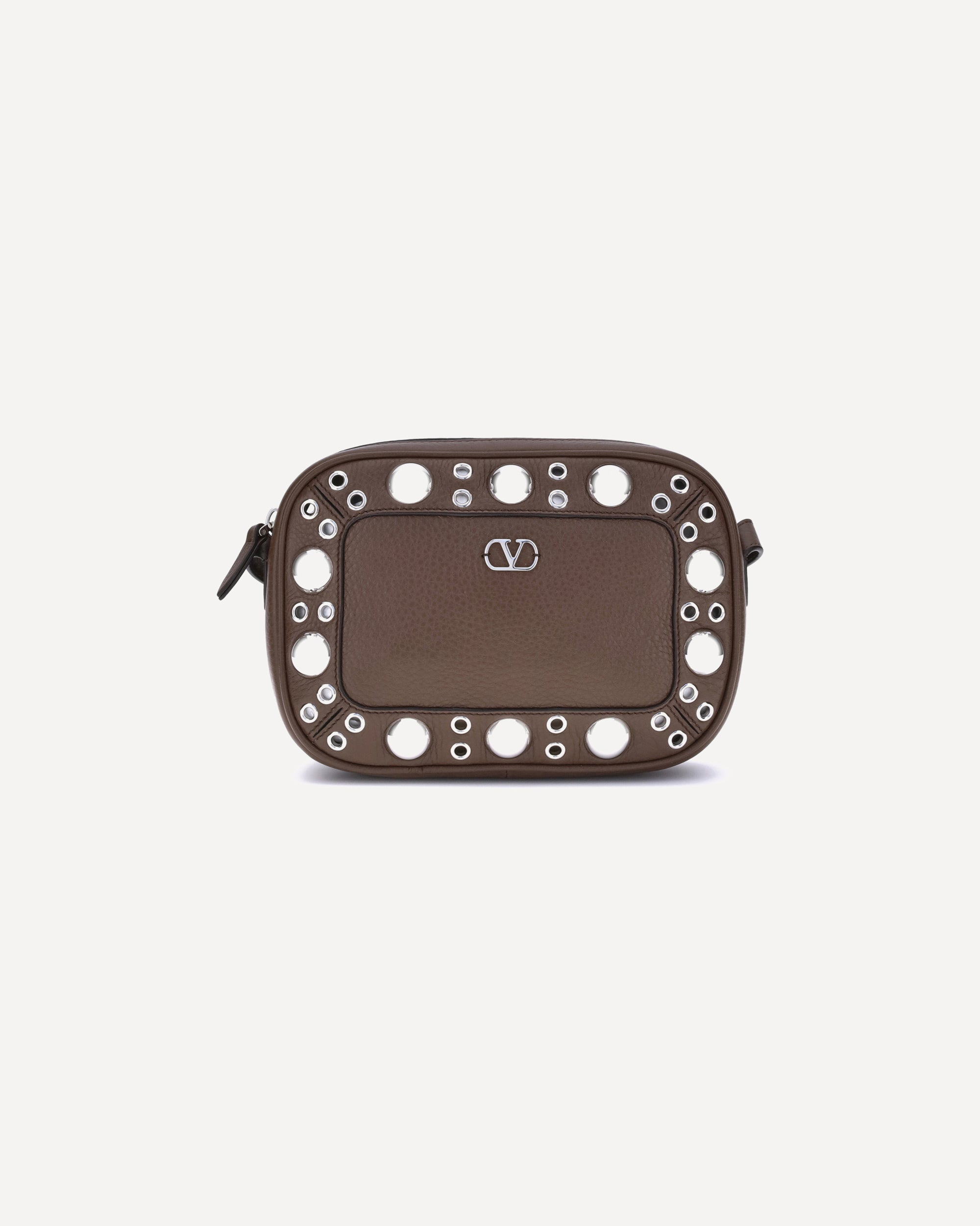 Valentino Garavani's Nellcote Shoulder Bag is crafted from garnet calfskin and embellished with a profile decorated with ball studs and rivets for a gritty yet refined look. Equipped with an adjustable leather shoulder strap, it can be worn comfortably on the shoulder or cross-body. The zipper closure and metal parts with palladium finish complete the design, along with the small metallic detail with Signature VLogo that signs the accessory with discreet elegance. DETAILS - Sku: 7W2B0R74MJL_W04 - Season: AW25 - Dimension: 23x23x6 - Composition: GENERAL 100% Calf Leather Bos Taurus - MADE IN ITALY