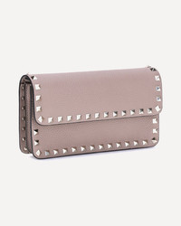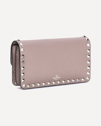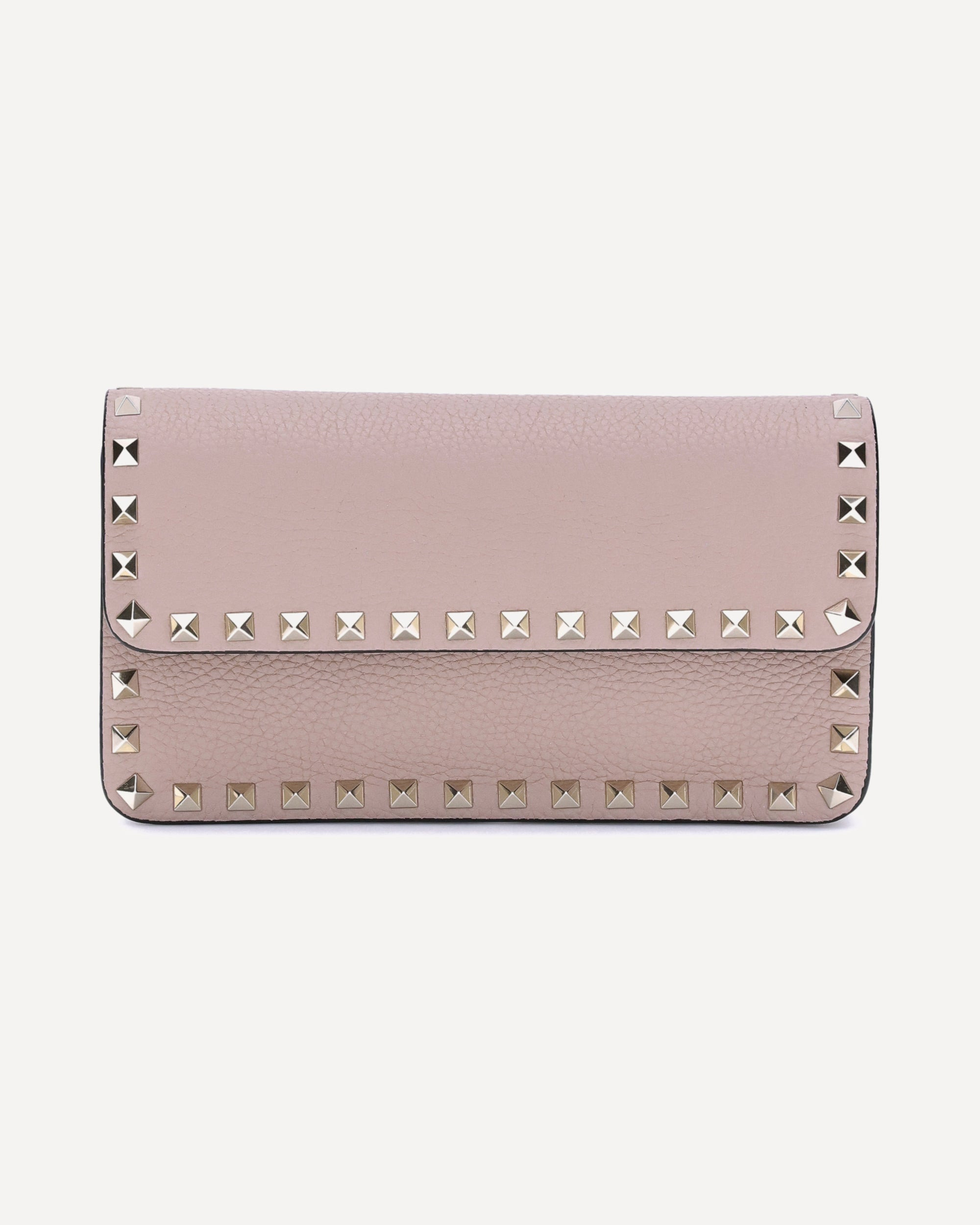 The Valentino Garavani Rockstud Pochette combines the Maison's iconic character with contemporary elegance. Crafted with platinum-effect metal finishes, it is embellished with the emblematic studs that define its bold style. The flap with magnetic closure hides a front pocket, while the interior is organized into two compartments divided by a zip pocket and equipped with three card slots. The chain allows it to also be worn on the shoulder, for a versatile and sophisticated look. DETAILS - Sku: 7W2P0S61VSH_P45 - Season: AW25 - Dimension: 21.5x21.5x4.5 - Composition: GENERAL 100% Calf Leather Bos Taurus - MADE IN ITALY