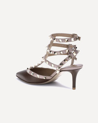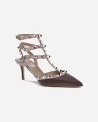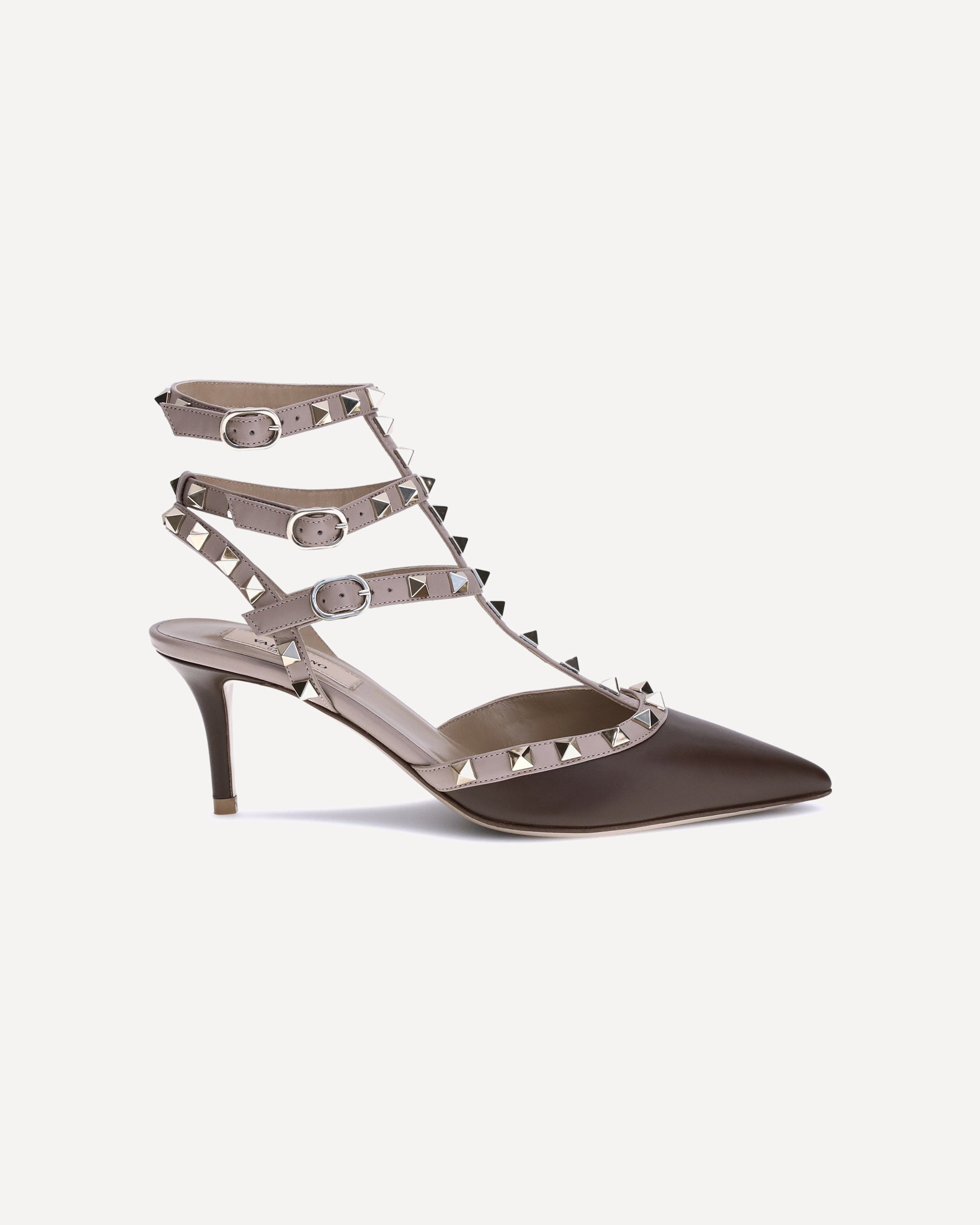 Valentino Garavani's Rockstud leather Pumps express bold, sophisticated elegance. Featuring an elongated geometric toe, they feature an ankle strap with a triple side buckle for a secure, feminine fit. The leather stiletto heel slims the silhouette, while the iconic all-over studs give the model a distinctive, bold character. The design is completed by the branded insole and the maison's signature craftsmanship. DETAILS - Sku: 7W2S0375VOD_CUW - Season: AW25 - Composition: GENERAL 100% Calf Leather Bos Taurus - MADE IN ITALY