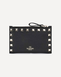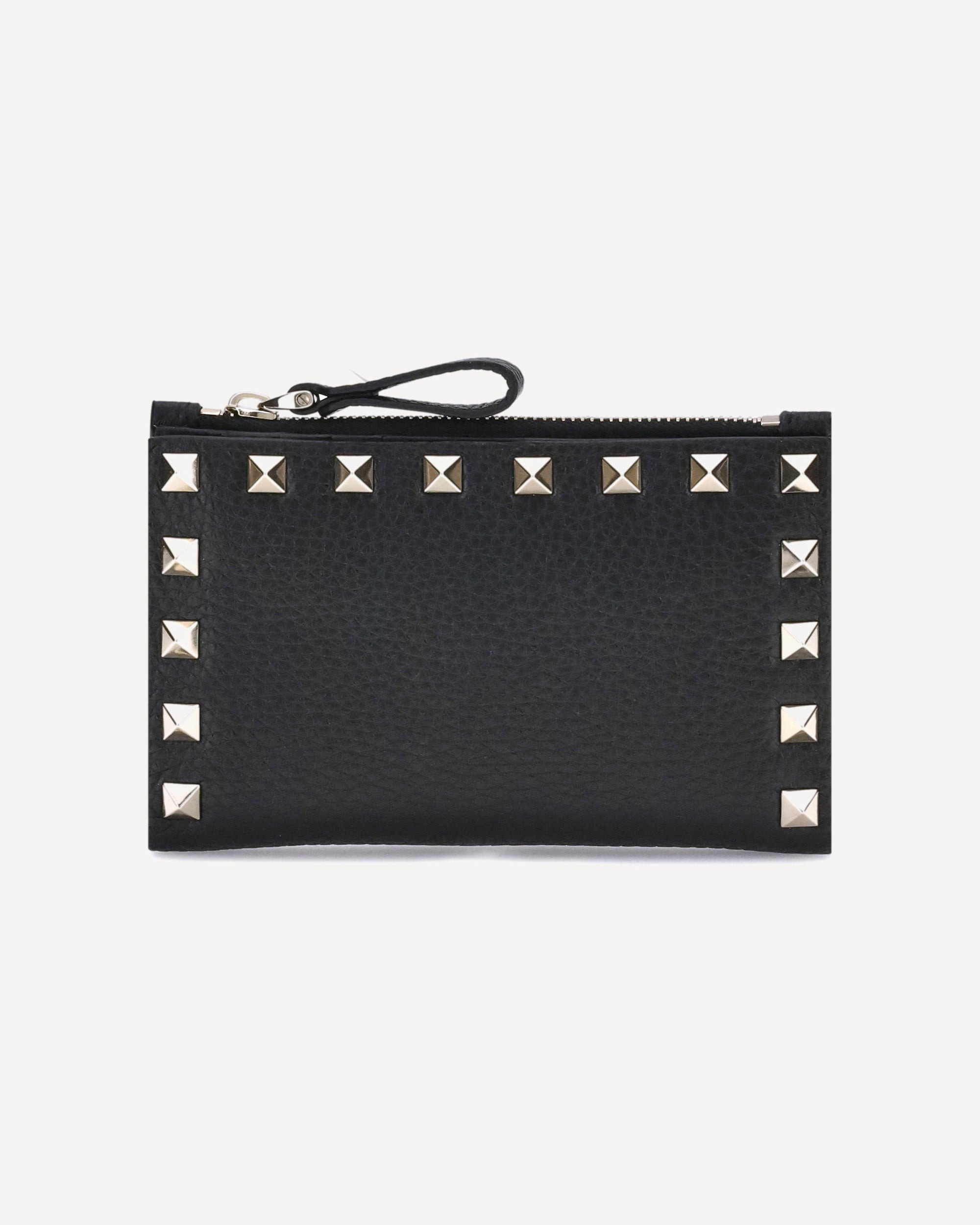 ROCKSTUD GRAINY CALFSKIN CARDHOLDER WITH ZIPPER