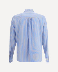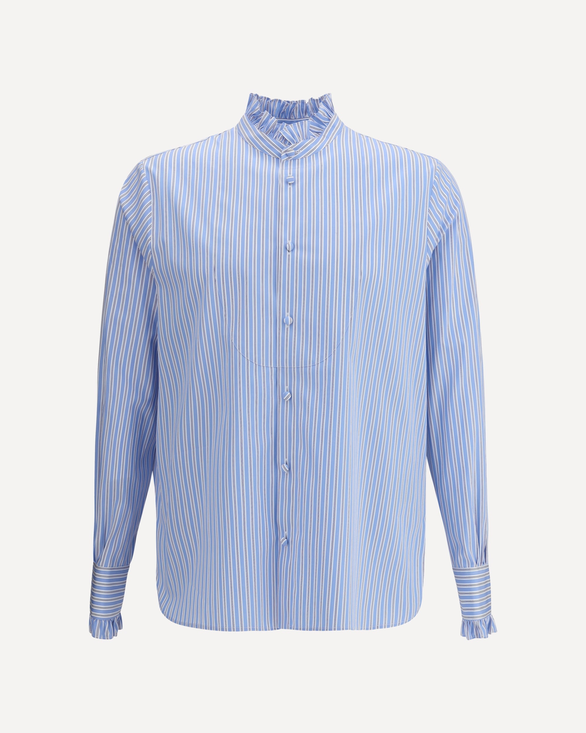STRIPED COTTON SHIRT WITH PLASTRON AND RUFFLES