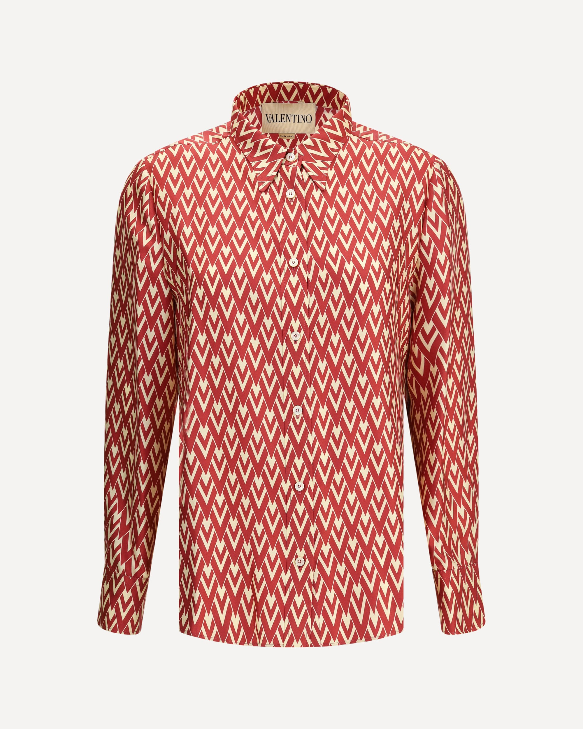 The Toute La V pattern Shirt by Valentino is an elegant piece with a graphic character. Featuring a classic collar and front button closure, it stands out for its all-over V pattern that recalls the iconic identity of the Maison with a bold and contemporary style. DETAILS - Sku: 7B3AB7Q190R_CLT - Season: AW25 - Fit: Regular - Composition: GENERAL 100% Silk - MADE IN ITALY