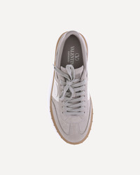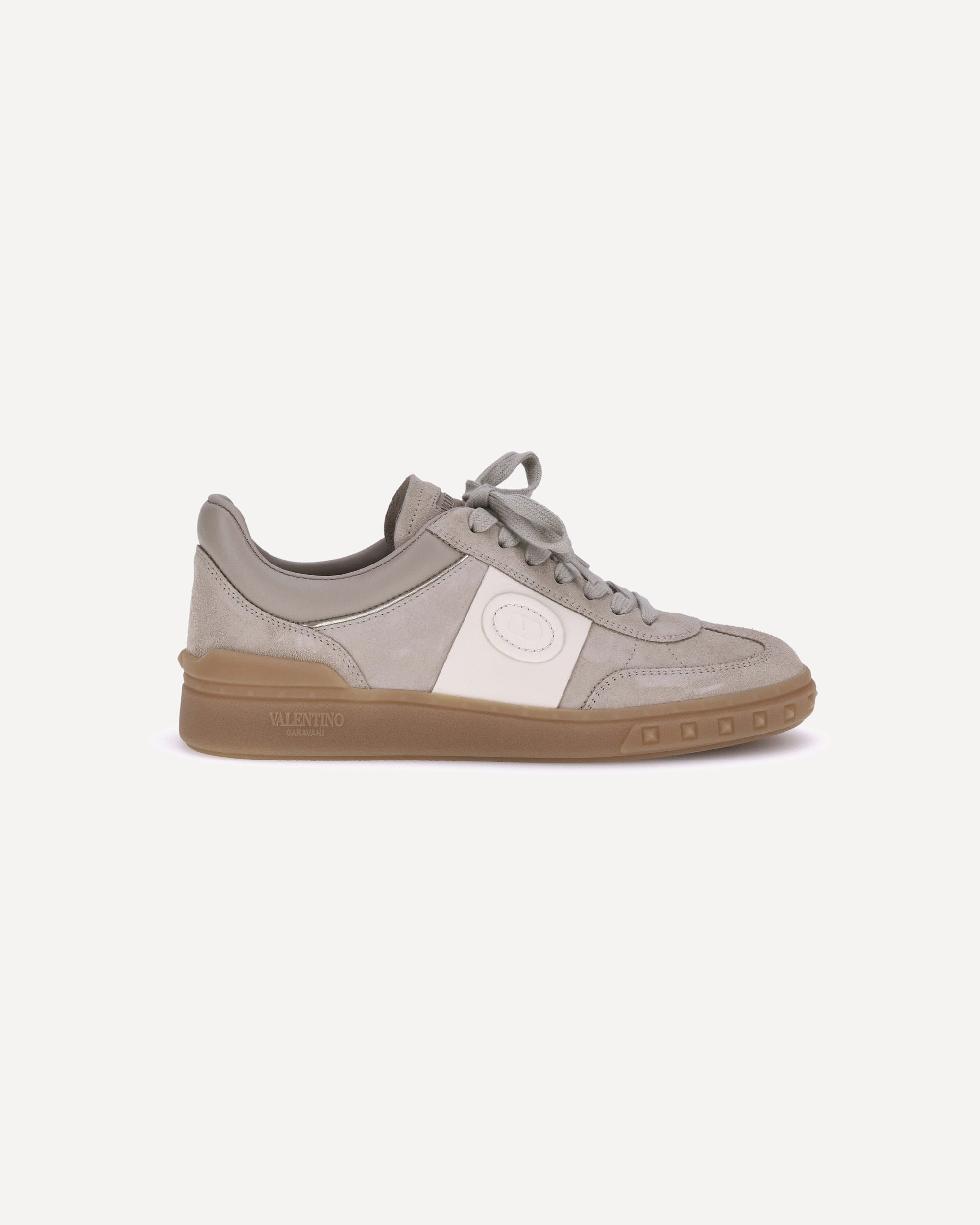 Valentino Garavani's Upvillage Sneakers combine high-quality materials and distinctive details. Made of split leather, they are enhanced with a tasseled calfskin band and leather patches with the signature Signature VLogo detail. The Valentino Garavani logo is screen-printed on the tongue, while laminated napa leather trim adds a touch of shine. The custom rubber sole, embellished with studs, completes the design with a gritty, contemporary touch. DETAILS - Sku: 7W2S0IL9FVU_Y6J - Season: AW25 - Composition: UPPER 100% Calf Leather Bos Taurus SOLE 100% Rubber - MADE IN ITALY