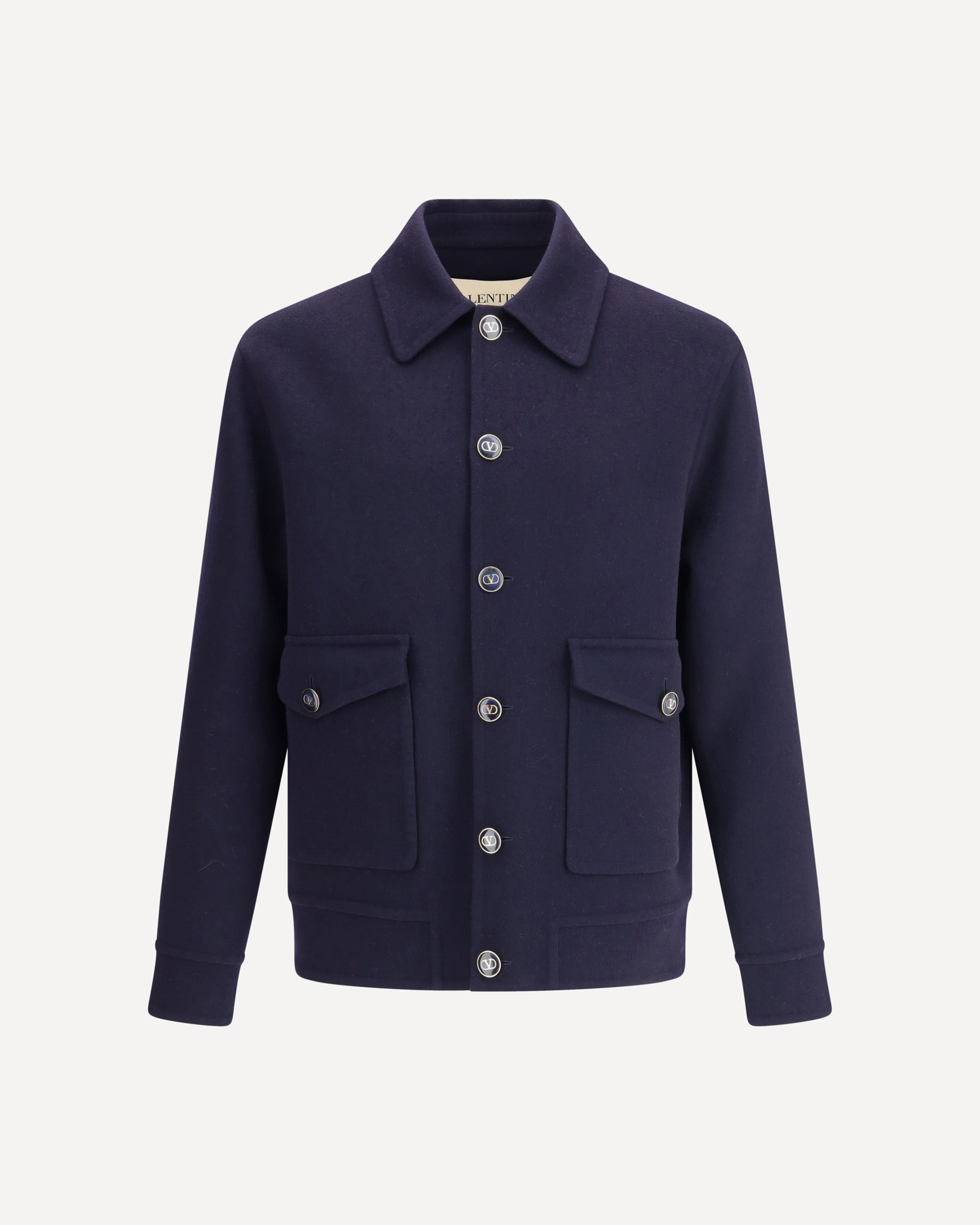Valentino's virgin wool Jacket has a structured and timeless design. It features a classic collar and a front button closure. The front is enriched with two welt flap patch pockets and two slit pockets, combining functionality and style. An ideal garment to complete elegant or refined casual looks. DETAILS - Sku: 7V3CJL402KA_FA8 - Season: AW25 - Fit: Regular - Composition: GENERAL 90% Fleece Wool 10% Kashmir/capra Hircus - MADE IN ITALY