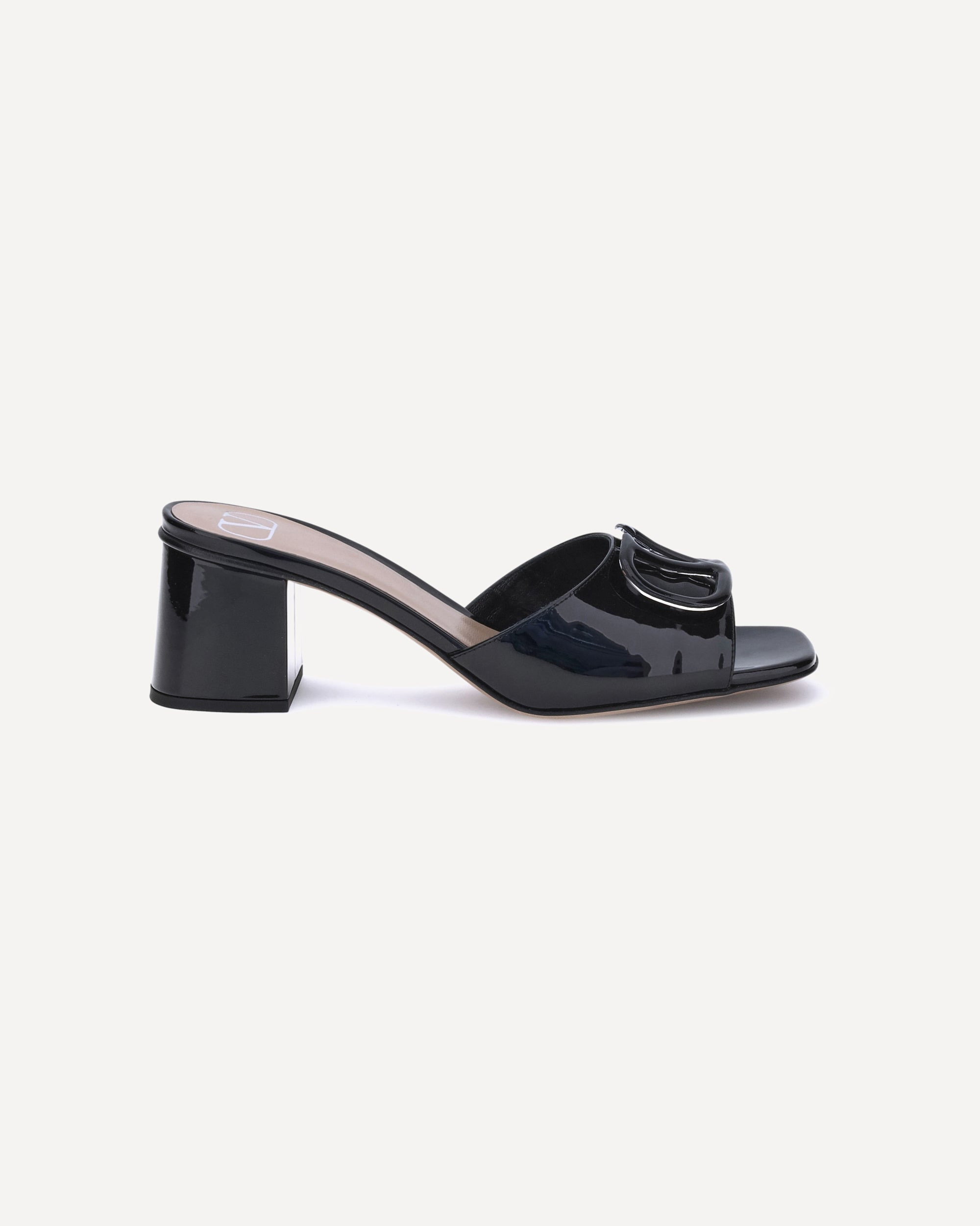 Valentino Garavani's slide Sandals are an elegant fusion of minimalism and brand identity. Made of glossy patent leather, they are decorated with the iconic Signature VLogo accessory, also covered in patent leather thanks to a refined high-frequency processing. The design is completed by a wide leather-bound heel and an essential yet distinctive silhouette. DETAILS - Sku: 7W2S0HA6TMK_0NO - Season: AW25 - Composition: GENERAL 100% Calf Leather Bos Taurus - MADE IN ITALY