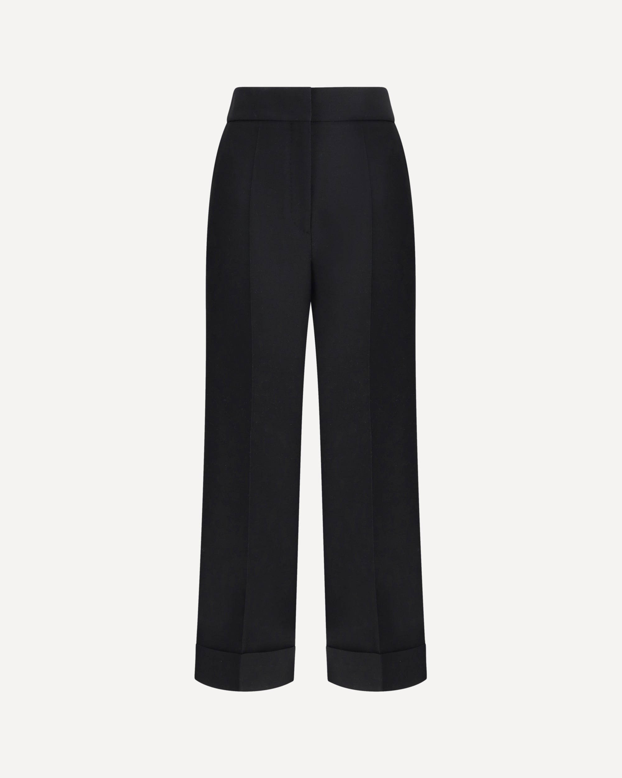Valentino's Wool Pants offer a clean, sophisticated silhouette perfect for stylish and versatile looks. The front zip-and-hook closure ensures a precise fit, while the two side welt pockets and back pockets add functionality. The turn-up at the bottom completes the design with a tailored touch, making it ideal for formal settings and more casual occasions with style. DETAILS - Sku: 7B3RB6N71CF_0NO - Season: AW25 - Fit: Regular - Composition: GENERAL 100% Wool - MADE IN ITALY