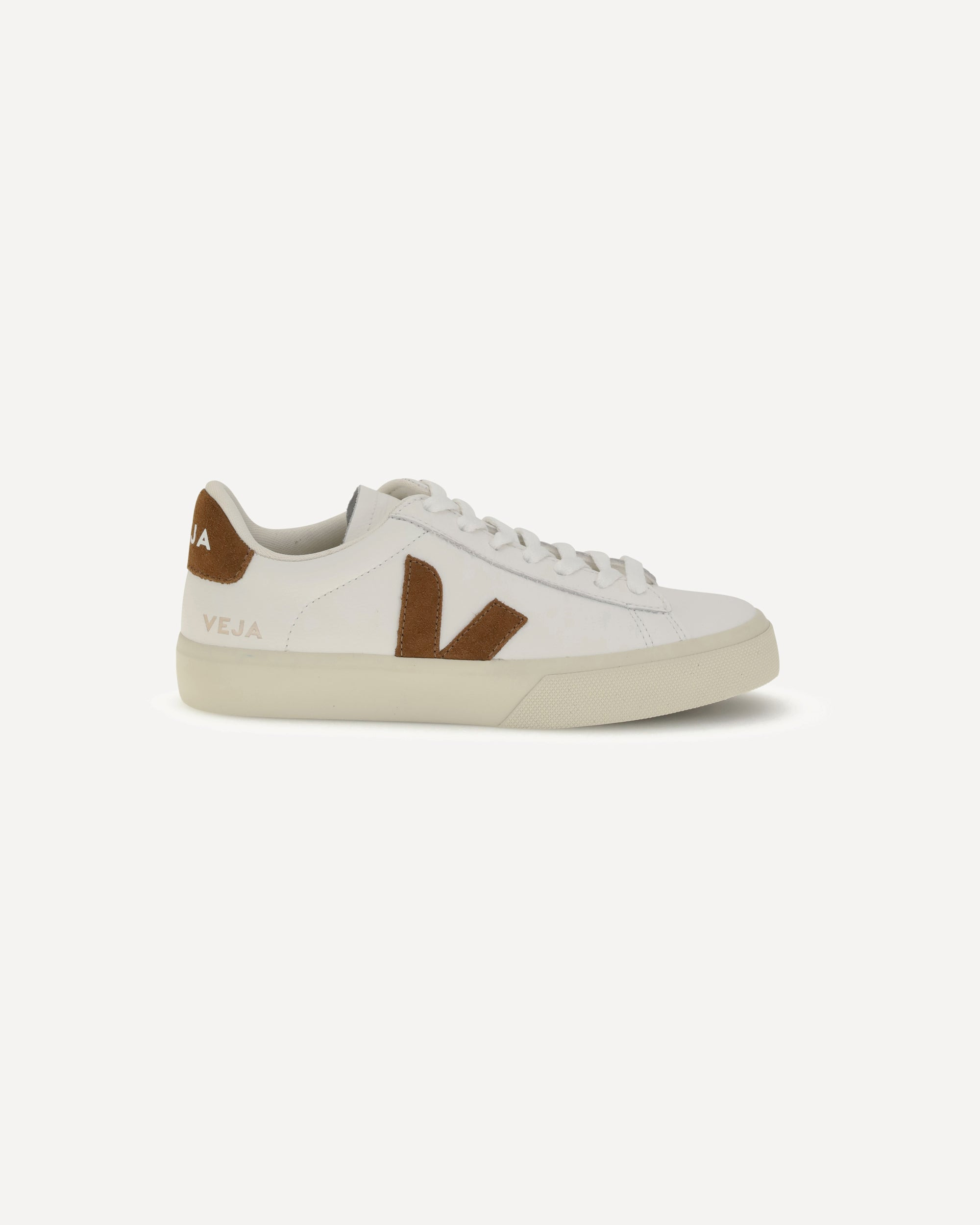 Veja's Campo Sneakers are made by O.T. (Organic Traced) leather, sourced from 100% certified organic farms in Uruguay, combining sustainability and style. Featuring a rounded toe and lace-up closure, they offer a flat sole for everyday comfort. The side-stitched "V" initial and logo on the heel add a distinctive and recognizable touch. DETAILS - Sku: CP0521058A_WHITECOGNA - Season: AW25 - Composition: UPPER 100% Leather SOLE 100% Rubber - MADE IN BRAZIL