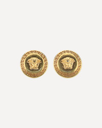 Earrings by Versace, round necklace with iconic gold-plated embossed Medusa head. DETAILS sku DG2H765DJMT_KOT composition : METAL METALLIC METALLISED 100% color group : BLACK gender : WOMAN season : SS24 size chart : WOMAN UNI category name : EARRINGS