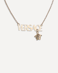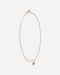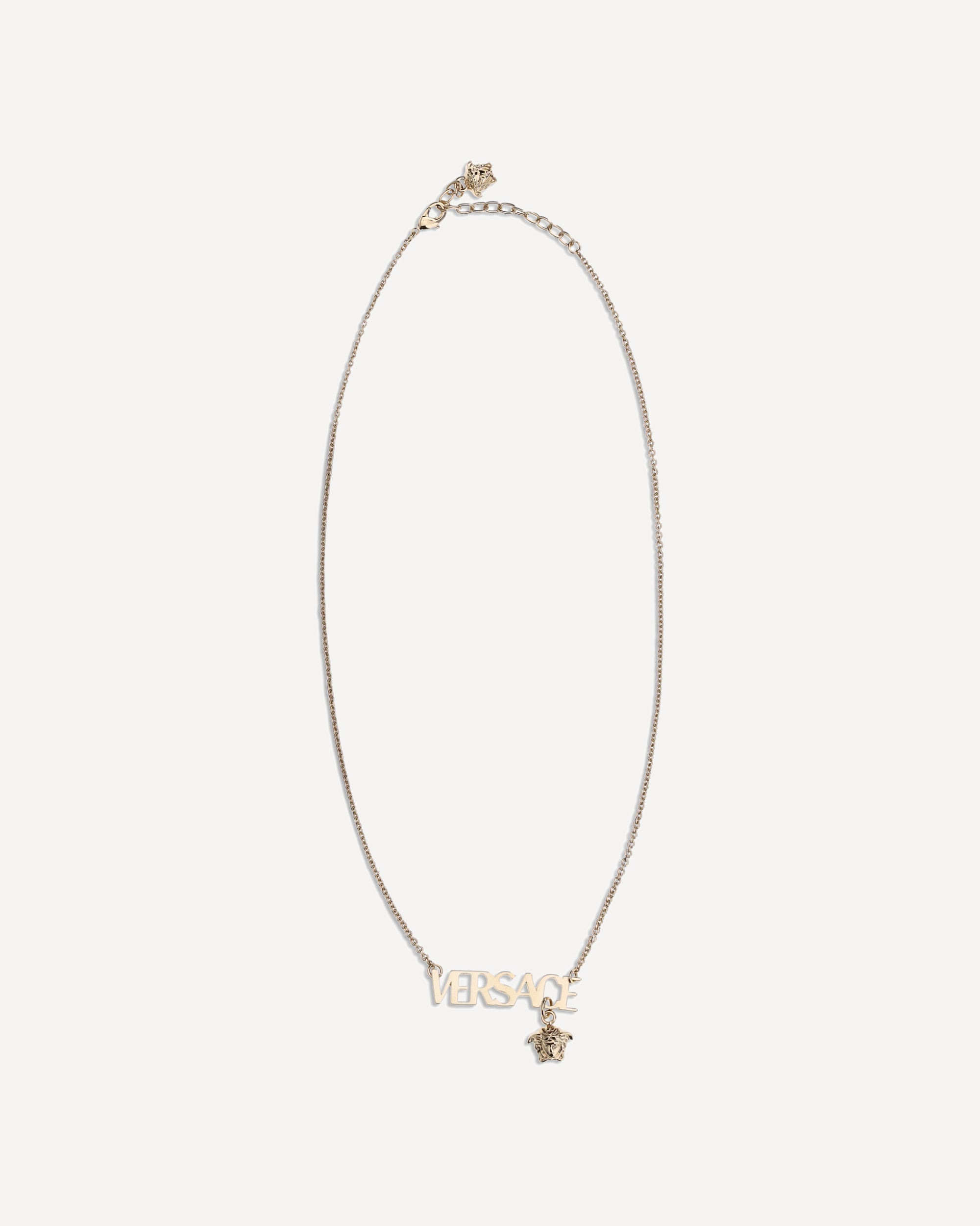 The Versace Logo Necklace is a thin and refined jewel, composed of a delicate chain on which the Versace writing stands out and a small Medusa pendant, the iconic symbol of the fashion house. Made with hypoallergenic materials, free of lead and nickel, it combines elegance and safety for those who want a distinctive and comfortable accessory to wear every day. DETAILS - Sku: 10207841A00620_3J000 - Season: AW25 - Composition: GENERAL 100% Metal Metallic Metallised - MADE IN ITALY