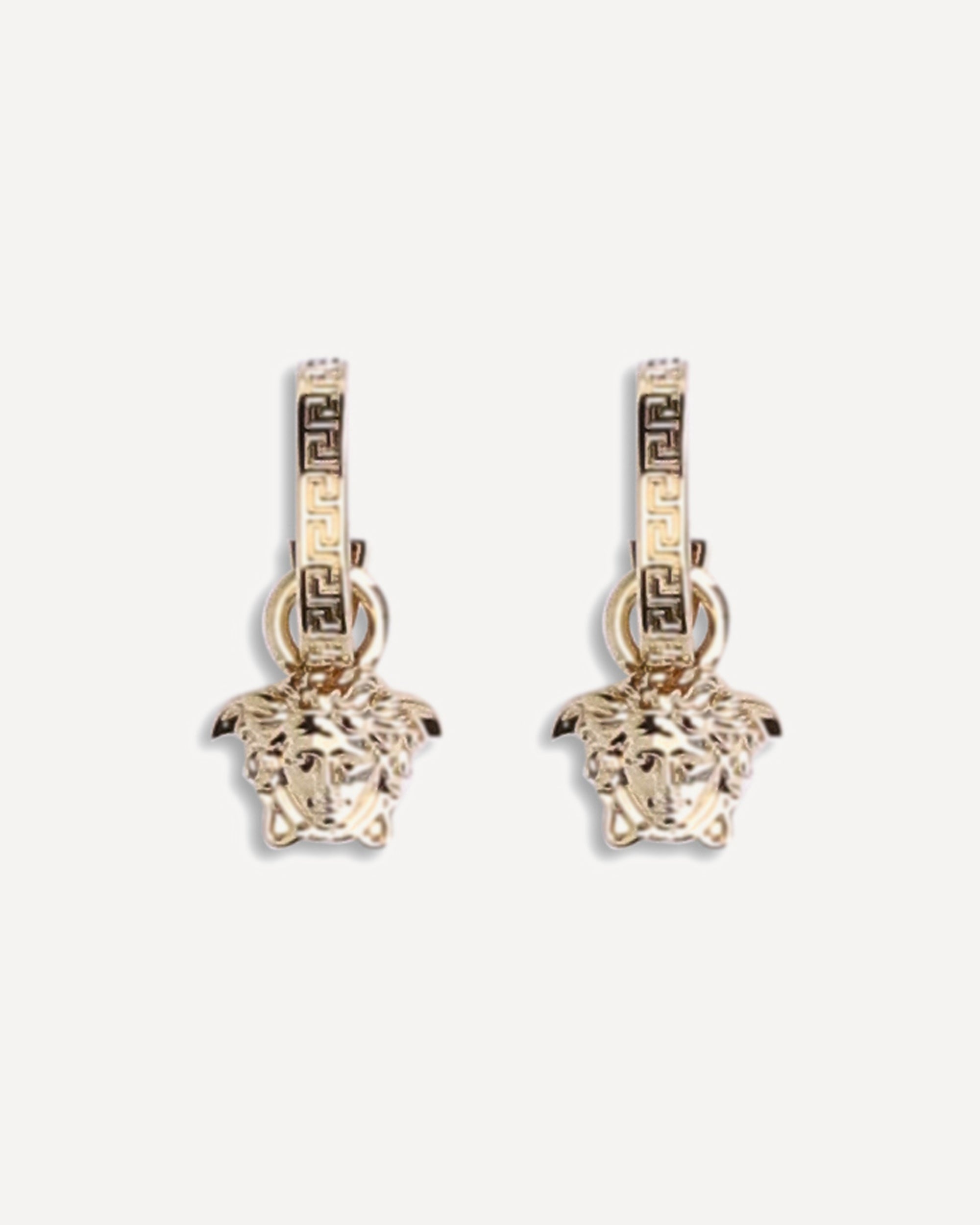 Versace earrings are a bold and distinctive accessory. Composed of small hoops with the iconic texture of the brand, they feature a butterfly closure and a pendant with the famous Medusa head, a timeless symbol of Versace style. DETAILS - Sku: DG2I135DJMT_KVO - Season: AW25 - Composition: GENERAL 100% Metal Metallic Metallised - MADE IN ITALY