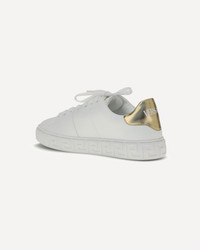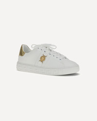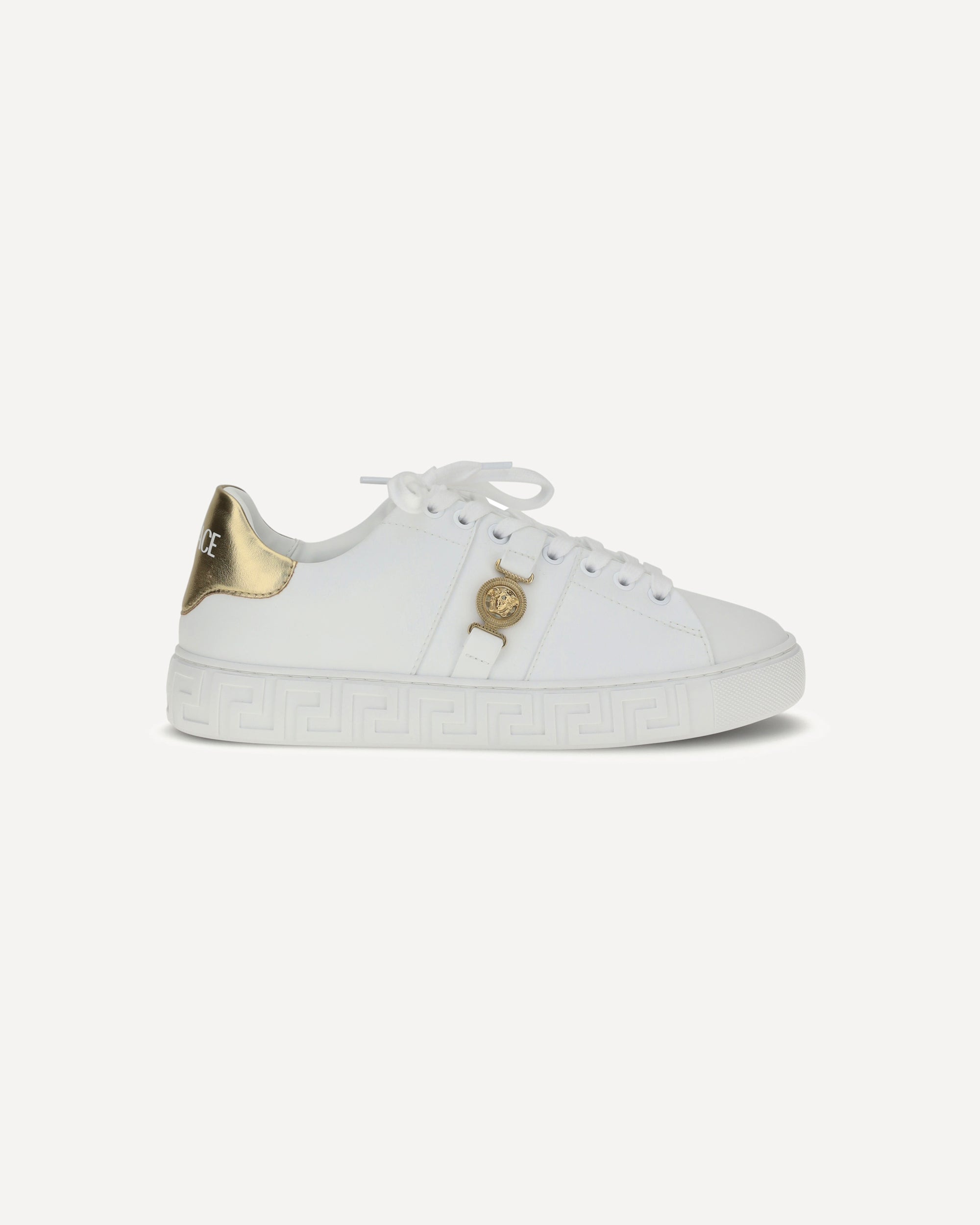 The Versace Medusa Sneakers stand out for their iconic Greek key sole and gold heel embellished with the brand's logo. Featuring a rounded toe and lace-up closure, they also feature an elegant gold Medusa detail on the side, underscoring their exclusivity. DETAILS - Sku: 10135681A14957_2W110 - Season: AW25 - Composition: UPPER 100% Calf Leather Bos Taurus SOLE 100% Rubber - MADE IN ITALY