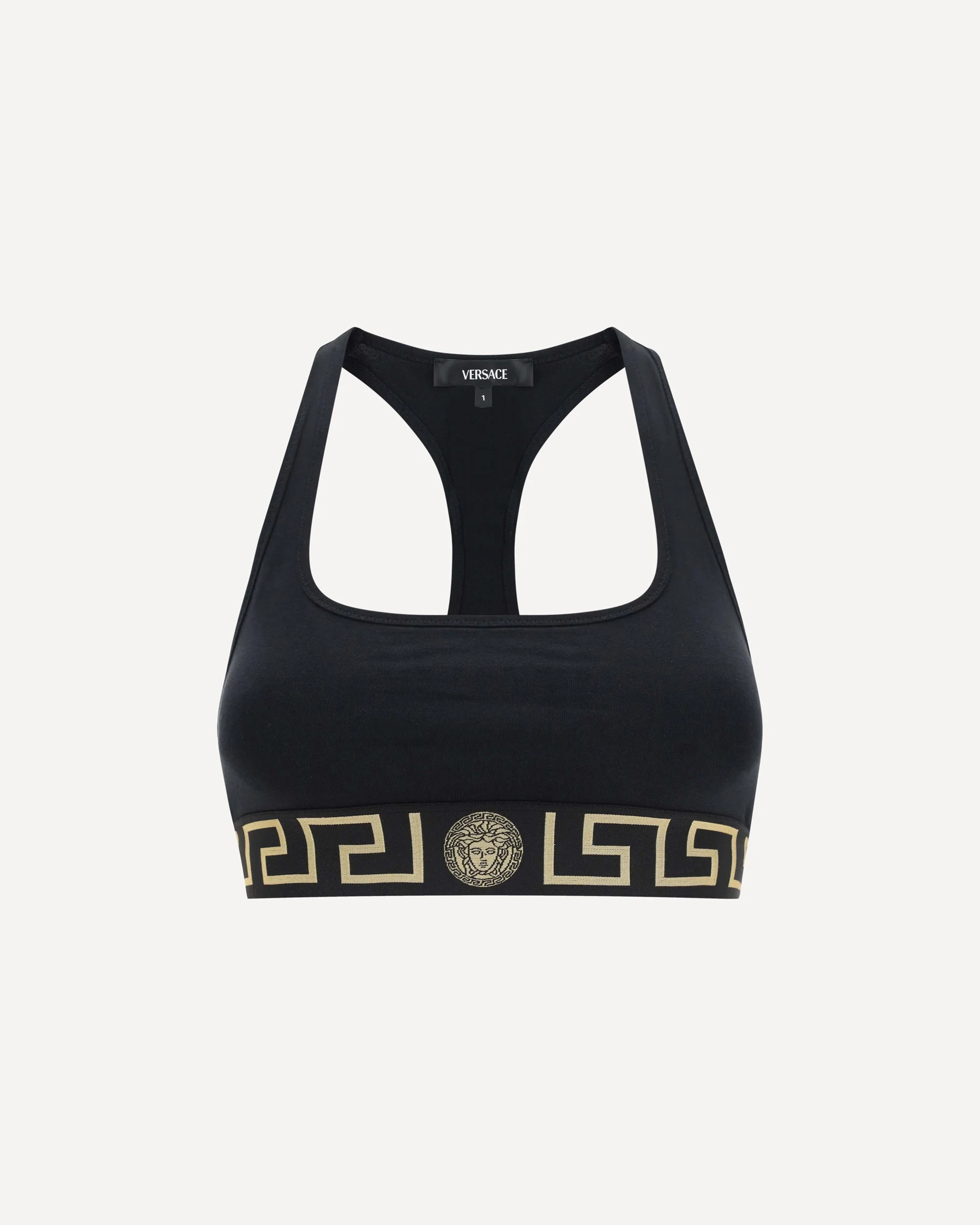 Cotton Underwear Top by Versace, elasticized bust lap with iconic all-over repeated brand motif, close fit. DETAILS sku AUD010391A10011_A1008 composition: COTTON 100% color group: BLACK gender: WOMAN season: AW24 size chart: NUMERIC category name: TOP