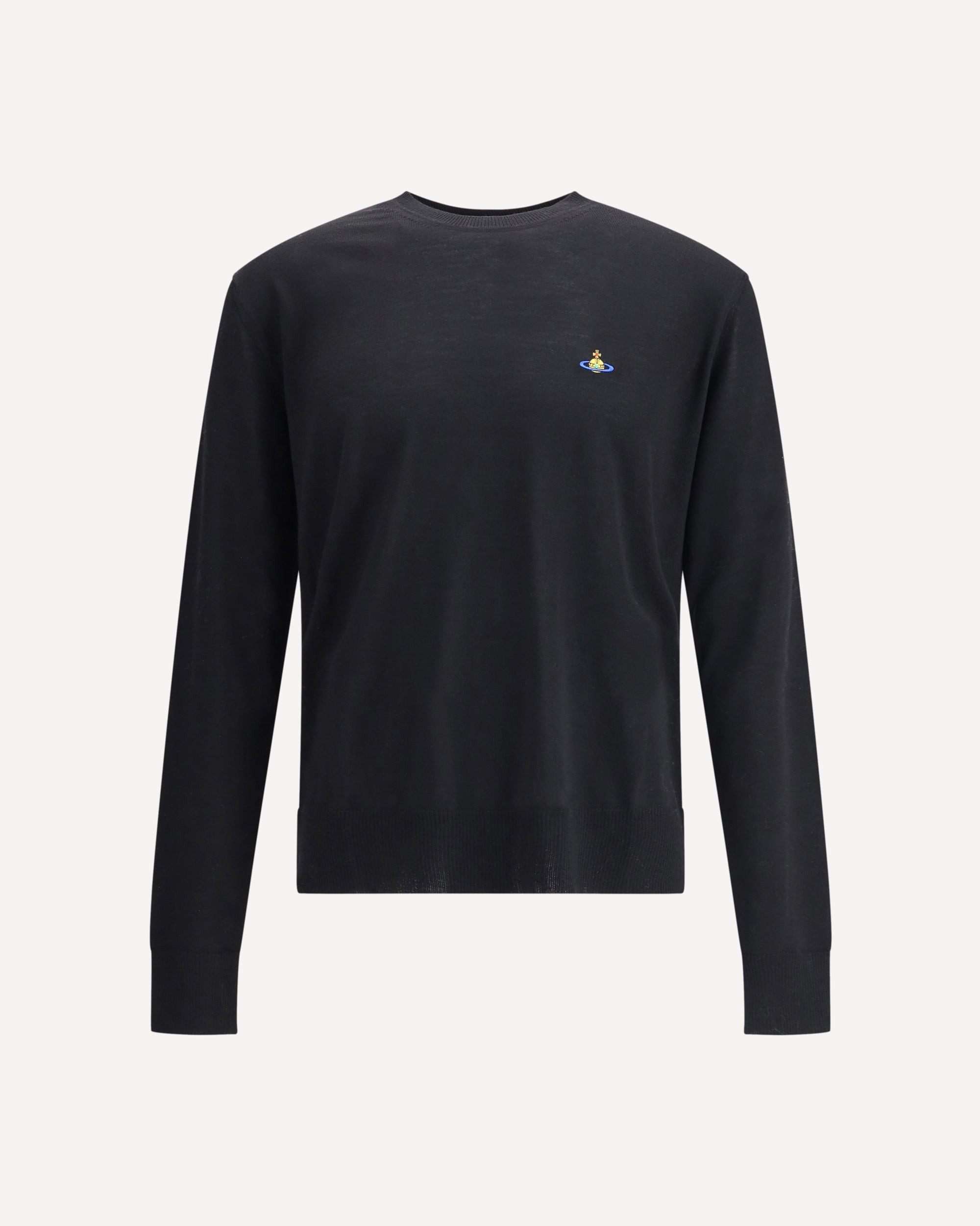 Vivienne Westwood's Alex wool Sweater combines iconic style and everyday comfort in a statement piece. Made from soft wool, it features a classic ribbed crew neck, as well as cuffs and hem, ensuring a comfortable and defined fit. The Orb logo embroidered on the front signs the design with a distinctive and unmistakable touch, typical of the Maison's creative vision. DETAILS - Sku: 27010012Y003Y_N401 - Season: AW25 - Fit: Regular - Composition: GENERAL 100% Wool - MADE IN ITALY
