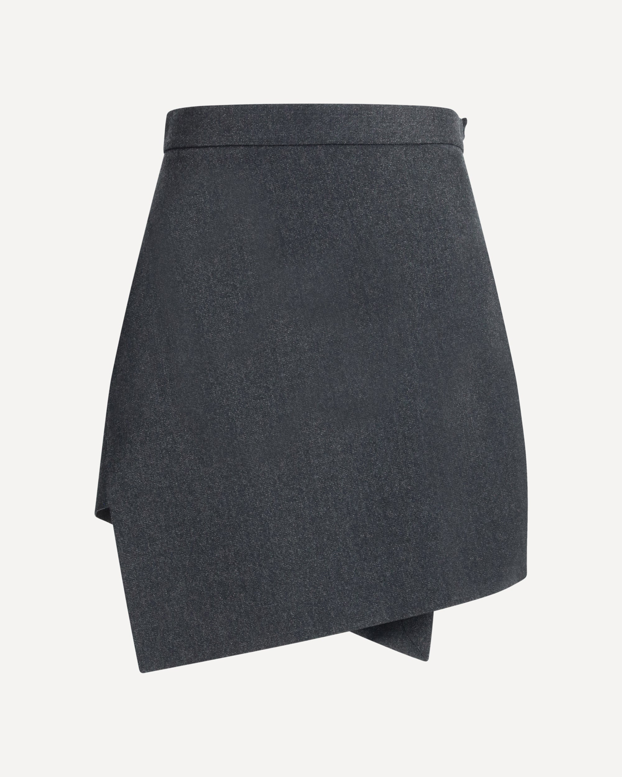 The Infinity Mini Skirt by Vivienne Westwood in brushed wool with a metallic finish is a wrap-style model with a hidden button, high waist, and asymmetrical flared silhouette. It features front and back darts, tone-on-tone stitching, and a jacquard lining with the Orb logo, creating a balance between elegance and contemporary style. DETAILS - Sku: 1K01002CW0173_P403 - Season: AW25 - Fit: Regular - Composition: GENERAL 98% Wool 1% Polyamide 1% Metal Metallic Metallised - MADE IN ITALY